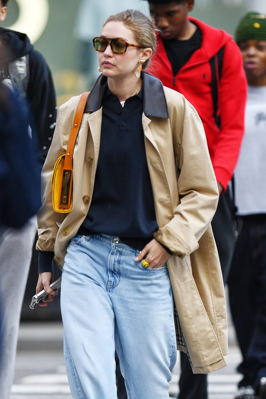 뉴욕 거리에서 포착된 지지 하디드처럼 입어보세요. 청바지라는 만능 아이템을 중심에 두고 프레피 룩의 요소를 아주 영리하게 버무려냈거든요. 흔히 프레피 룩 하면 떠오르는 몸에 딱 맞는 폴로 티셔츠와 슬림한 치노 팬츠 대신, 지지는 넉넉한 실루엣의 배기 진을 선택했습니다. 자칫 고루해 보일 수 있는 네이비 폴로 티셔츠를 헐렁한 데님 위에 툭 걸치니, 단숨에 쿨한 프레피 스타일이 완성됩니다. 여기에 깃이 단정한 베이지 카 코트를 매치해 격식은 갖추되, 가죽 칼라 디테일로 뻔하지 않은 디테일을 더했죠.