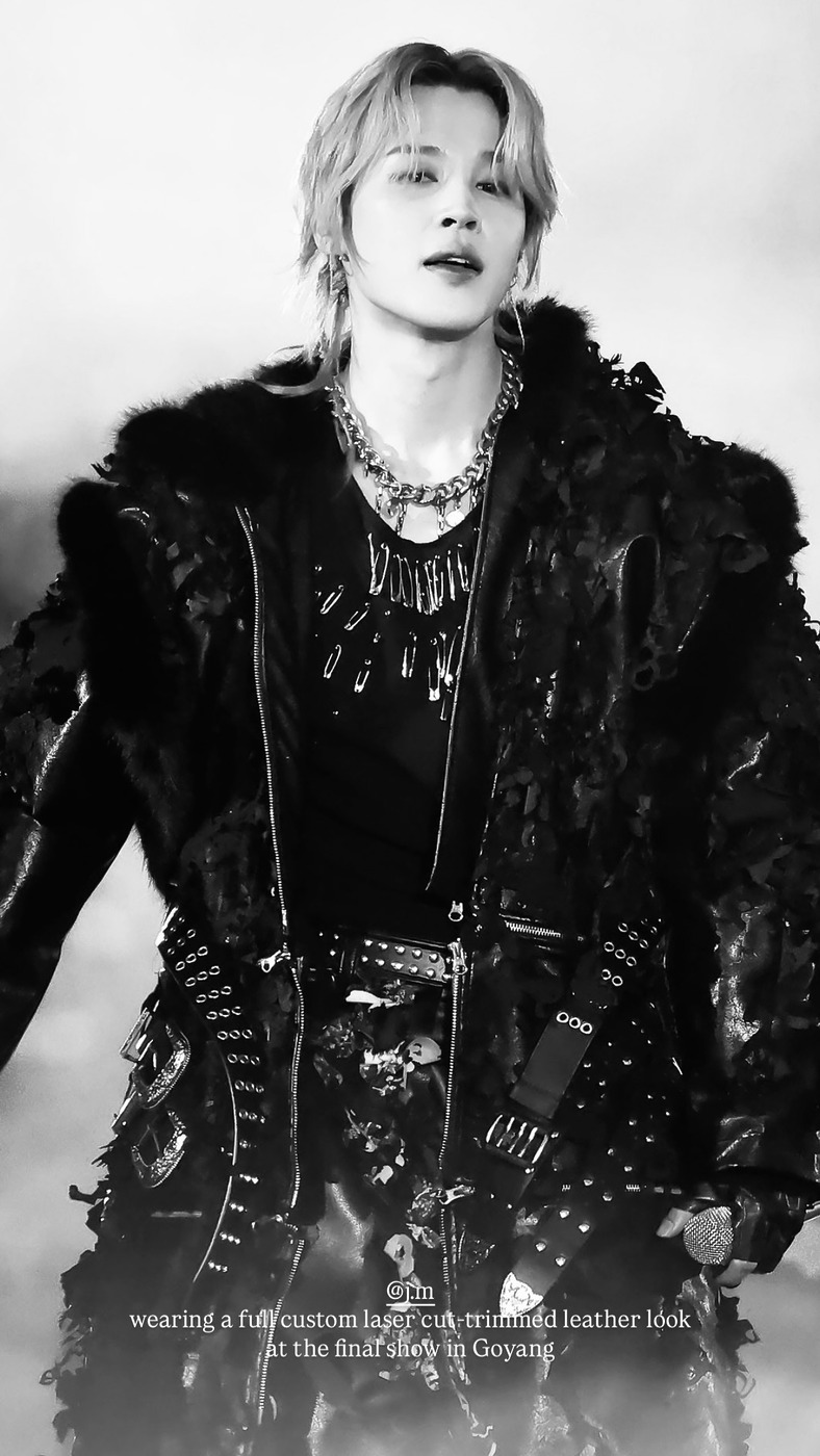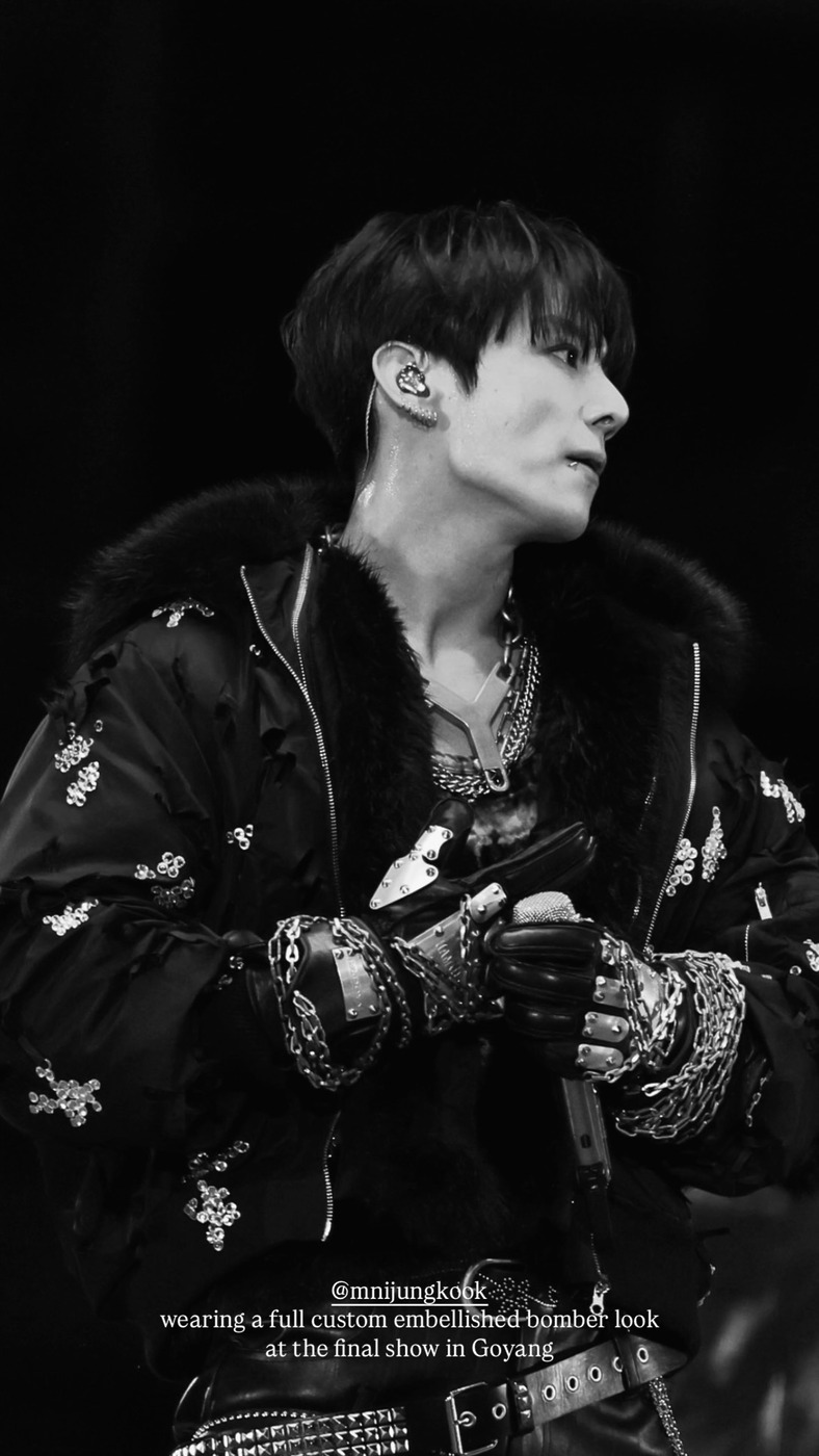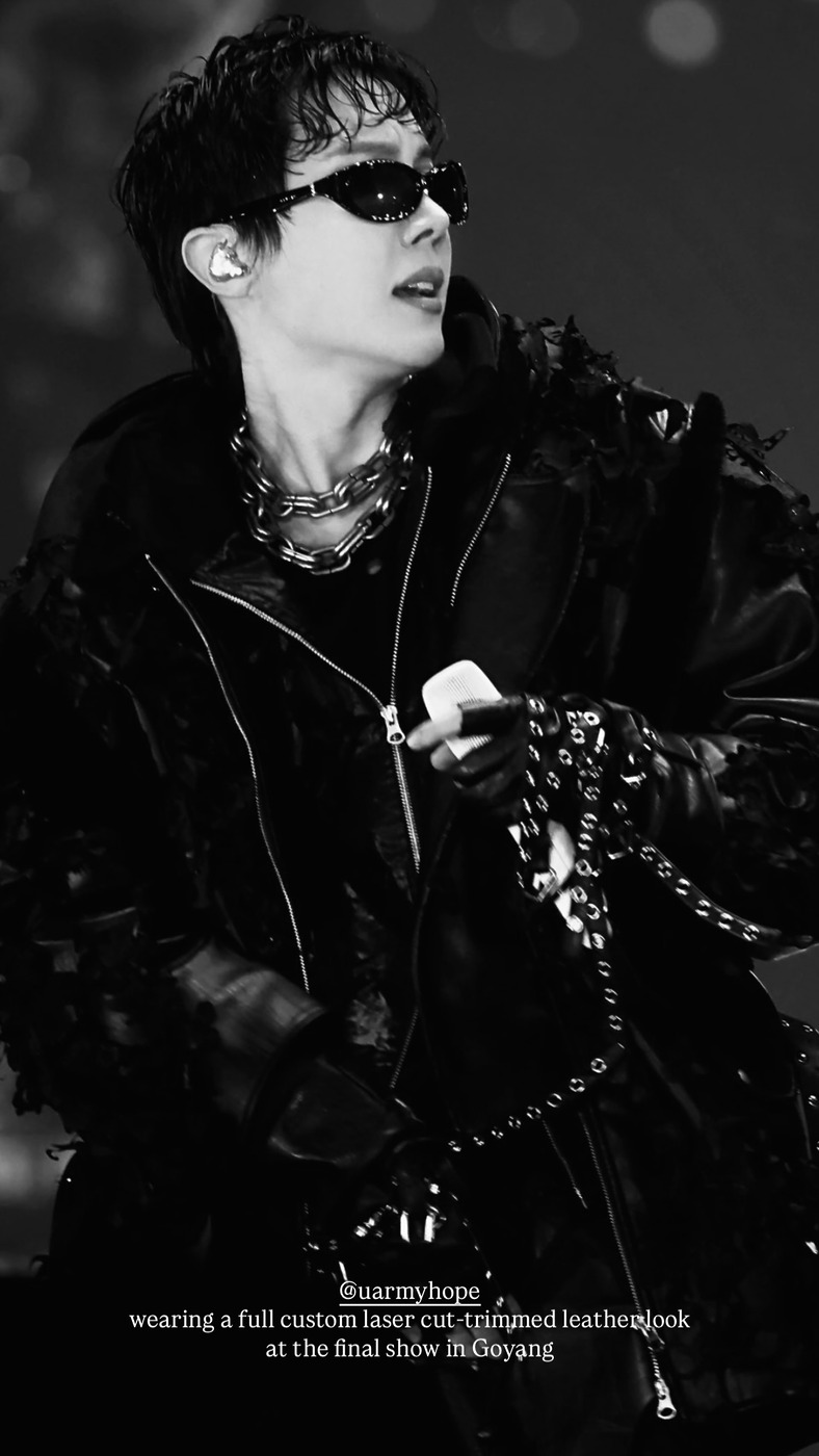 방탄소년단 멤버들은 원형 무대를 활용해 팬들과 함께 호흡하는 퍼포먼스를 펼쳤는데요. 특히 마지막 공연에서는 멤버들 모두 검은색 가죽 의상으로 강렬한 인상을 남겼습니다. 디자이너 김준태가 이끄는 브랜드 준태 킴의 커스텀 메이드로 완성된 이번 의상은 멤버별 개성에 맞춰 디테일을 변주한 것이 특징입니다.