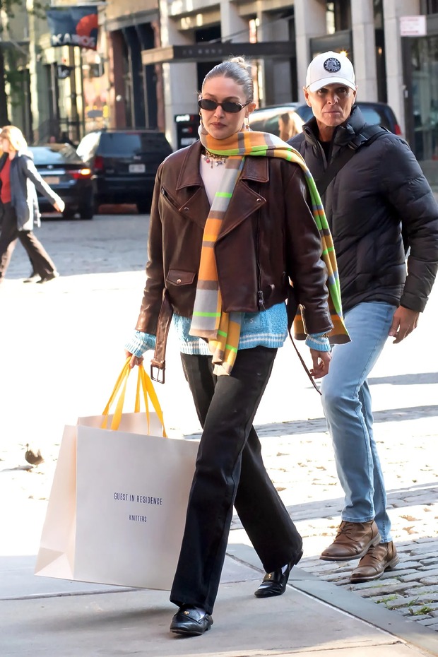 언제나 다양한 컬러를 즐겨 입는 하디드지만, 사실 그녀의 평소 스타일링에서 기본이 되는 것은 ‘클래식’입니다. 흰 티셔츠와 청바지를 출발점 삼아, 참이 달린 목걸이를 잔뜩 걸거나 밝은 톤의 스웨터를 입어 스타일을 한 차원 끌어올리거든요. 자신이 만든 캐시미어 브랜드 ‘게스트 인 레지던스’를 마음껏 활용해 어떤 룩이든 생동감 넘치게 만들기도 하고요.