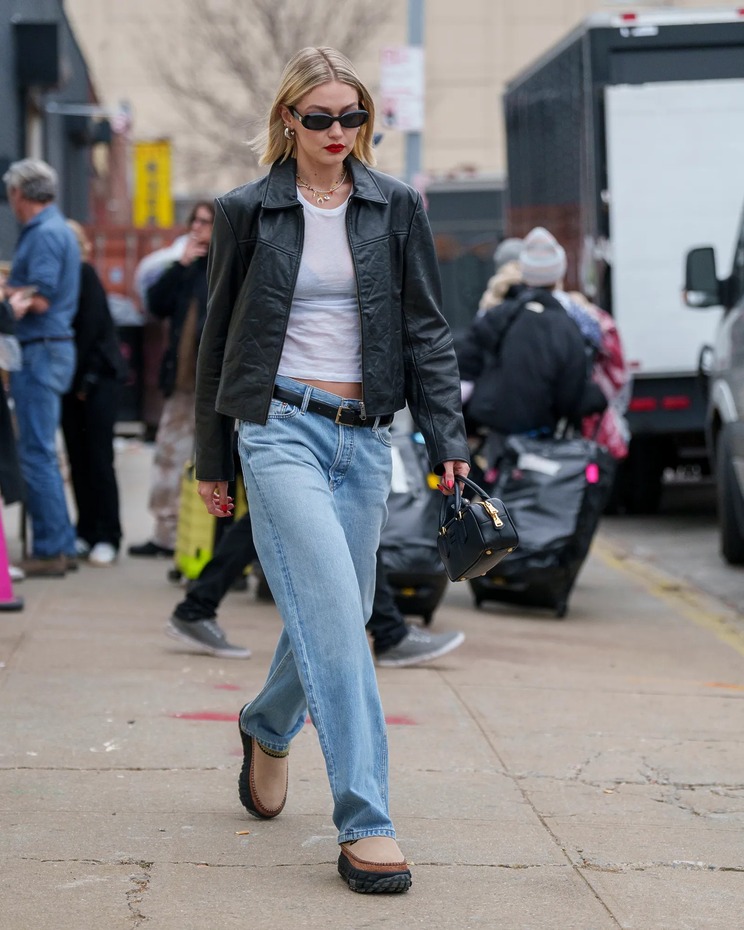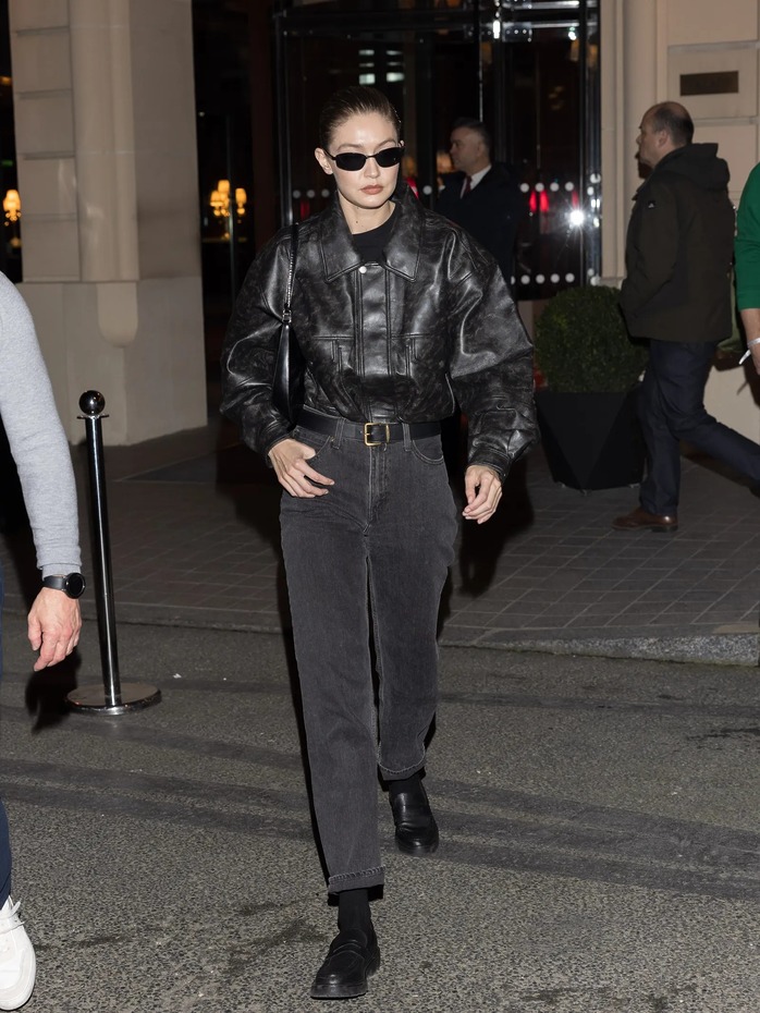 가죽 재킷은 옷장 속 영원한 필수 아이템이죠. 하디드는 모든 상황에 딱 맞는 가죽 재킷을 하나씩 갖추고 있어요. 블레이저, 바이커 재킷, 봄버 재킷 등 없는 게 없을 정도죠.