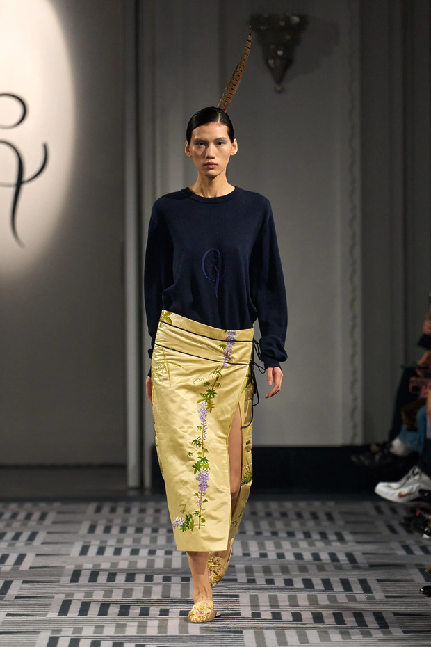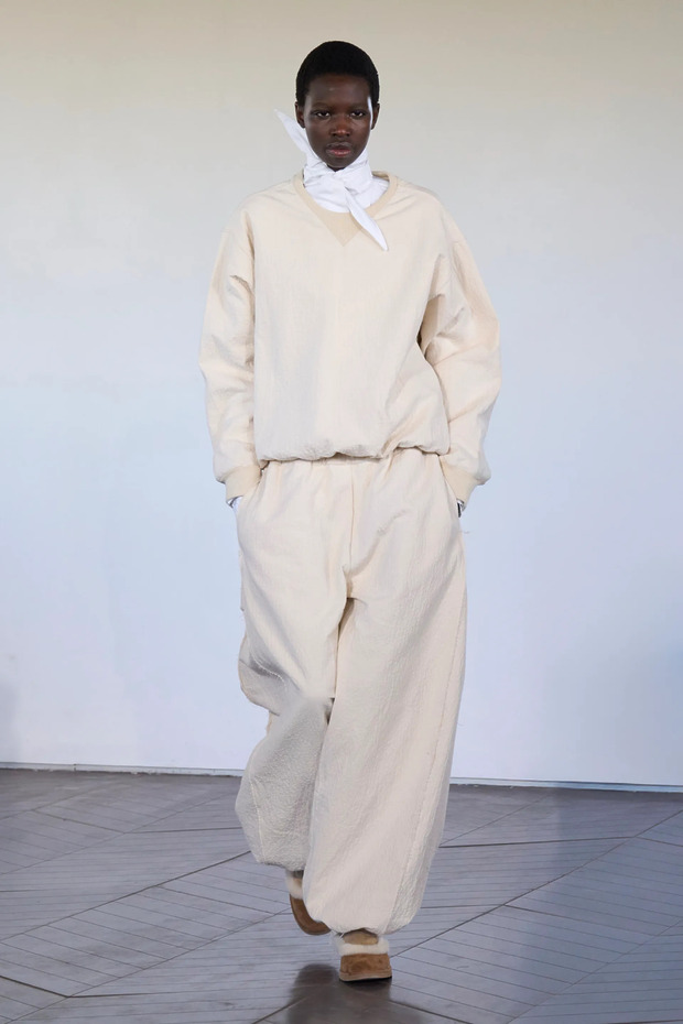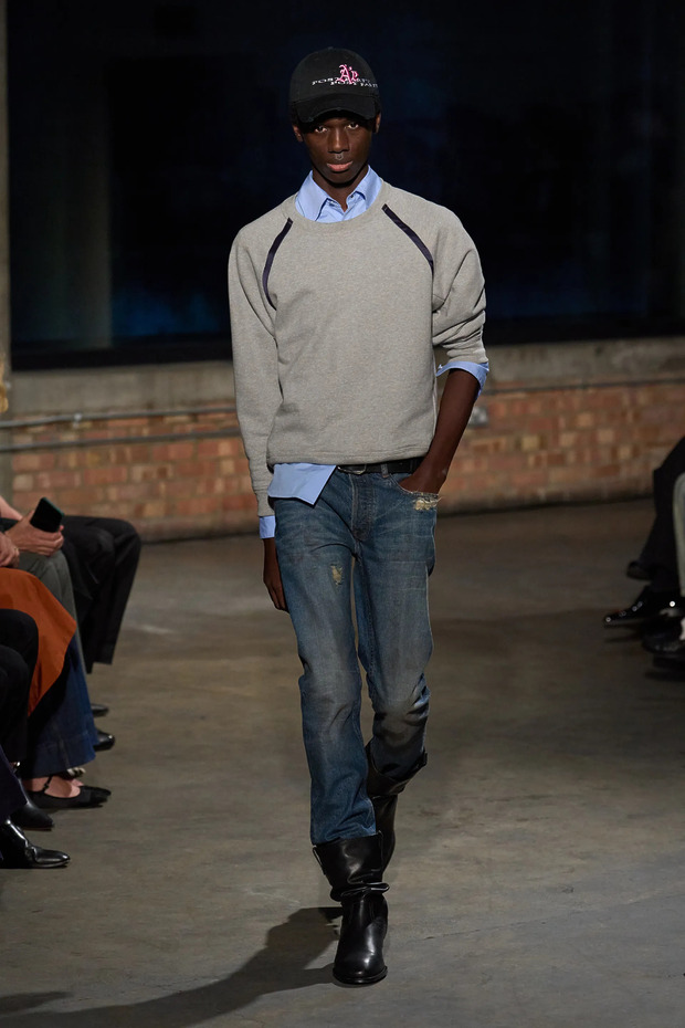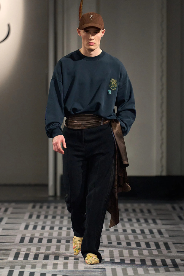 마티유 블라지와 조나단 앤더슨뿐만 아닙니다. 2026 봄/여름 시즌 런던 패션 위크 중에도 세 브랜드가 스웨트셔츠를 런웨이에 올렸거든요. 각기 다른 방식으로 스웨트셔츠를 연출했다는 점도 흥미로웠습니다. 아론 에쉬는 셔츠와 스웨트셔츠, 그리고 스키니 진을 조합했습니다. 탈리아 바이어의 올 화이트 룩은 미니멀한 분위기를 자아냈고, 코너 아이브스는 플로럴 프린팅 슈즈와 스커트를 활용해 룩에 포인트를 더했습니다.
