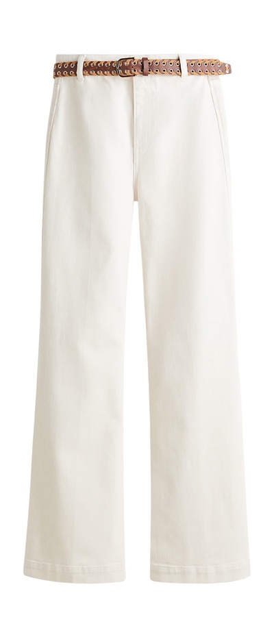 망고의 XL 와이드 플레어는 다리가 최소 10cm는 길어 보이게 만들 정도로 놀라운 비율을 빚어냅니다. 평일엔 오피스 룩으로, 주말엔 보헤미안 무드로 변신하는 전천후 아이템이죠. 끌로에 스타일의 스트랩 키튼 힐에 브라운 컬러 러플 블라우스까지 곁들이면 돼요.