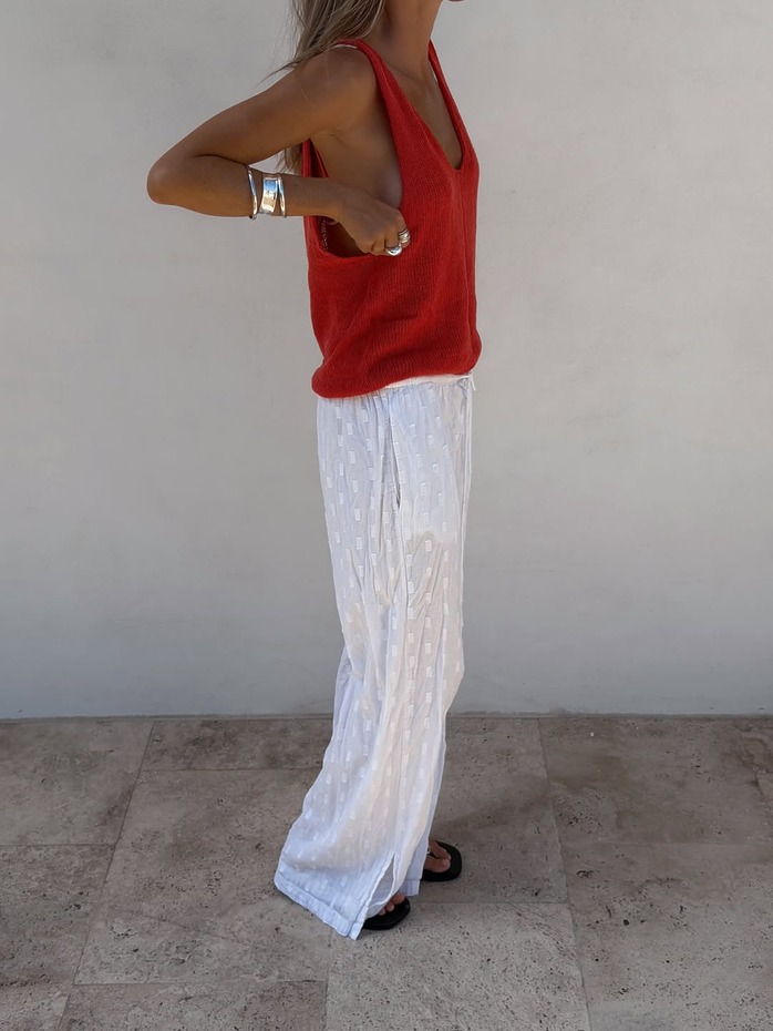 여름에 다다르면 레이어링을 걷어낸 레드 니트를 마이크로 쇼츠와 매치해도 좋습니다. 깊이 파이고 늘어진 듯한 크로셰 슬리브리스까지 갖춘다면, 도심은 물론 뜨거운 해변에서도 레드 니트 특유의 질감과 컬러를 명료하게 즐길 수 있을 거예요. 그러니 올봄, 단 한 가지 새로운 컬러를 허락하기로 결심했다면 무조건 레드여야 합니다. 얼마든지 과감해질 수 있는 명쾌한 색상이니까요.