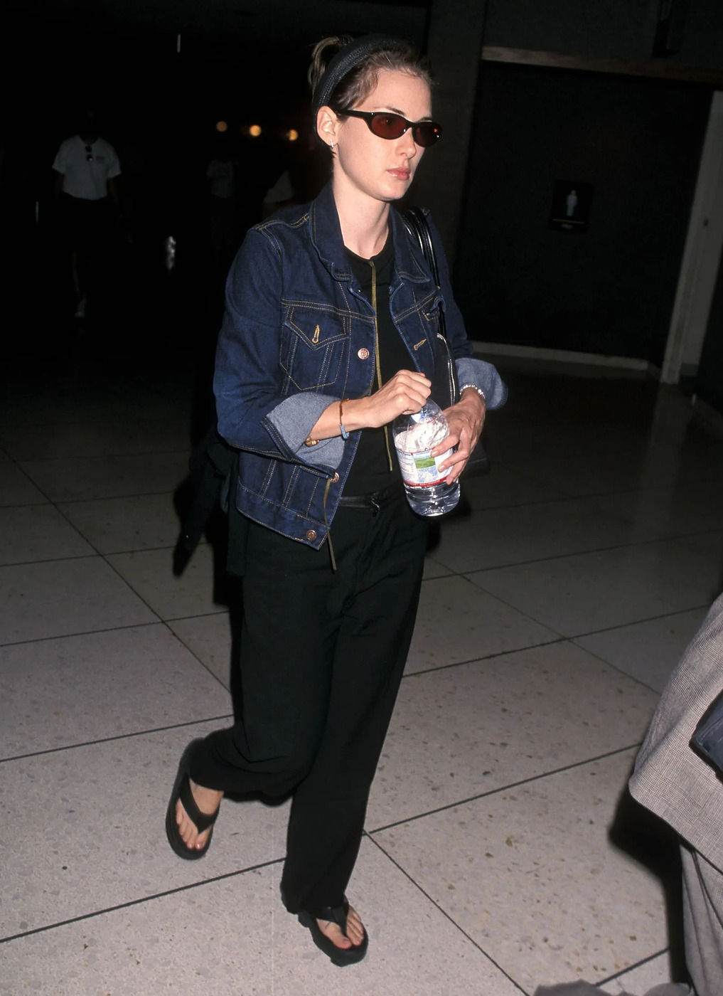 데님 재킷, 검정 티셔츠, 검정 팬츠에 플립플롭. 지극히 평범한 아이템만 활용한 위노나 라이더의 룩이 지루하게 느껴지지 않는 것은 단지 그녀의 외모 때문만은 아닙니다. 최근 유행하는 플랫폼 플립플롭을 선택하며 약간의 위트를 더하고, 재킷 소매를 걷어 올리며 액세서리가 보이도록 연출한 덕분이었죠. 그녀처럼 작은 디테일에 신경 쓰면 기본 아이템만으로도 충분히 멋을 낼 수 있습니다.
