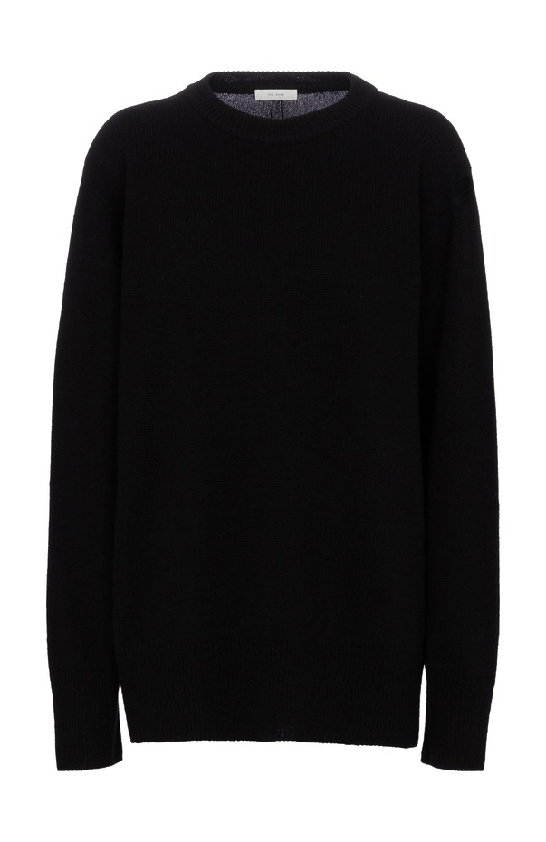 블랙 니트 + 플라워 스커트 + 플랫 슈즈