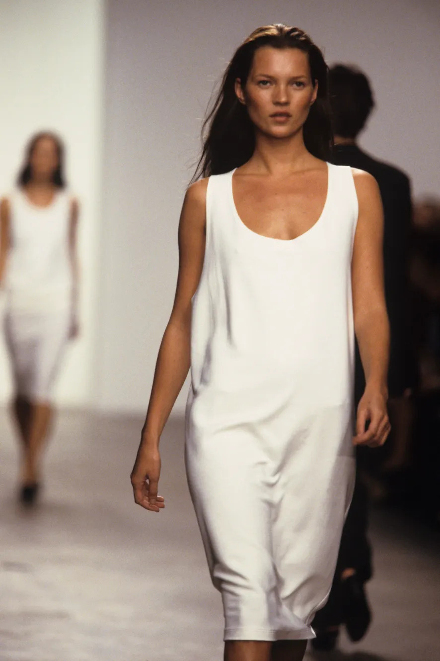 미니멀 스타일 안에서도 핏에 따라 분위기는 극명하게 갈립니다. 구찌 보디콘 드레스처럼 몸을 따라 길게 흐르며 선을 강조하거나, 미우미우처럼 길이는 과감하게 줄이되 실루엣은 직선으로 툭 떨어뜨리는 식으로요. 어느 쪽이든 과한 노출보다는 신체의 선을 정갈하게 보여주는 데 집중합니다. 덕분에 전체적인 룩은 훨씬 절제되어 보이죠.