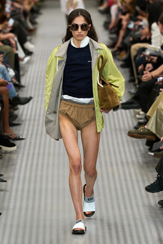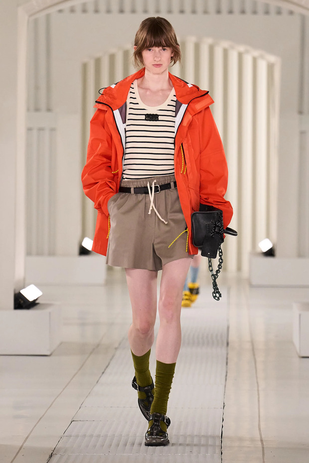 1990년대식 미니멀리즘을 상징하는 아이템이라고는 하지만, 미세한 광택을 머금은 슬립 드레스는 어딘가 부담스럽게 느껴질 수 있습니다. 조금 더 일상적으로 활용할 수 있는 룩을 찾고 있다면 오니츠카타이거의 런웨이를 참고하세요. 어렵게 생각할 것 없이 캐주얼한 분위기의 룩을 연출한 뒤 밝은 색깔의 윈드브레이커를 걸쳐주면 끝입니다. 지퍼를 전부 잠그면 다소 답답한 인상을 줄 수 있다는 점도 잊어서는 안 되고요. 조금 더 과감해지고 싶은 날에는 로에베의 제안처럼 길이가 짧은 마이크로 쇼츠를 활용해도 좋습니다.