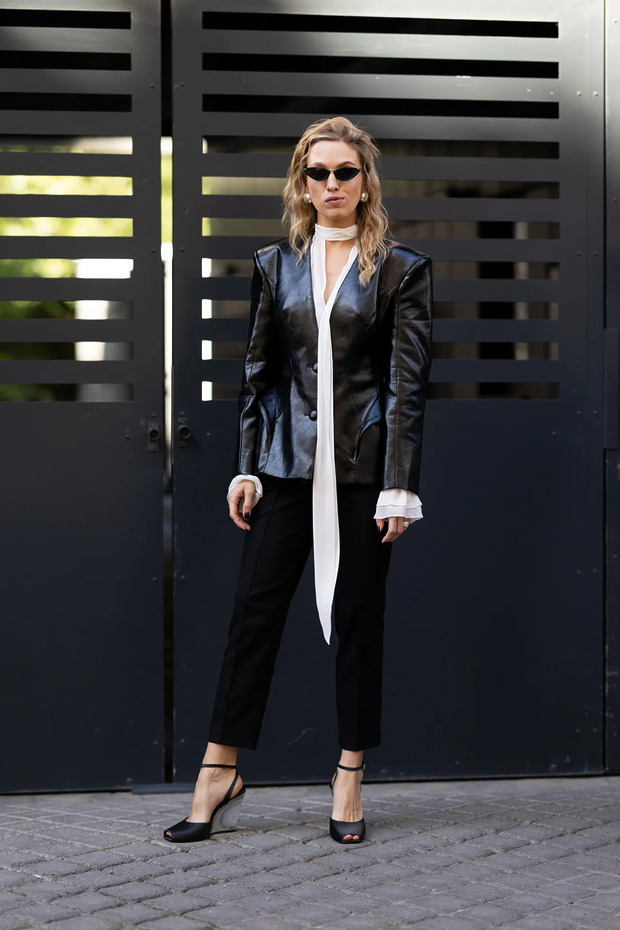 미니멀리스트도 무리 없이 착용할 수 있습니다. 에르메스 2001 가을/겨울 컬렉션과 2026년 거리의 멋쟁이를 보세요. 블랙 수트에 아이보리 스카프를 더하니 시크한 무채색 룩이 완성됩니다. 스카프가 유연하게 흐르는 덕분에 화려한 장식 없이도 고급스럽죠.