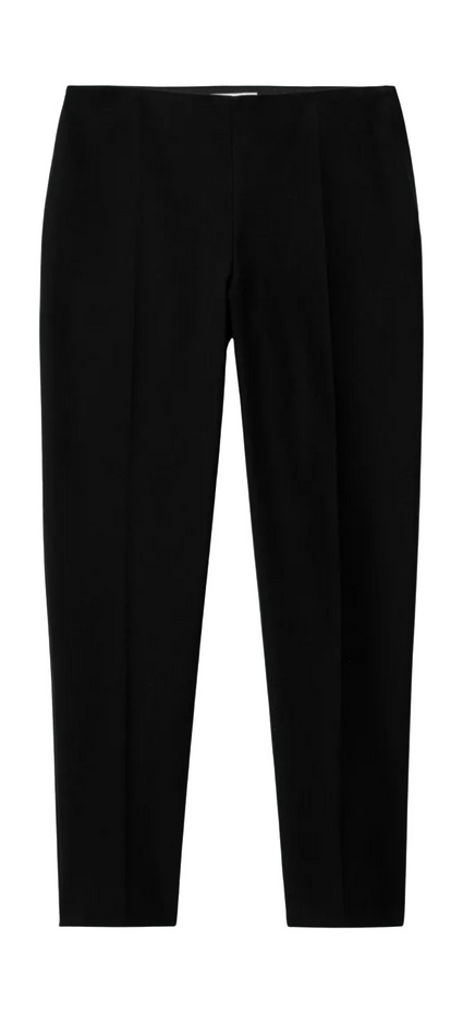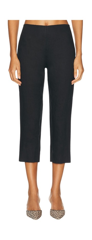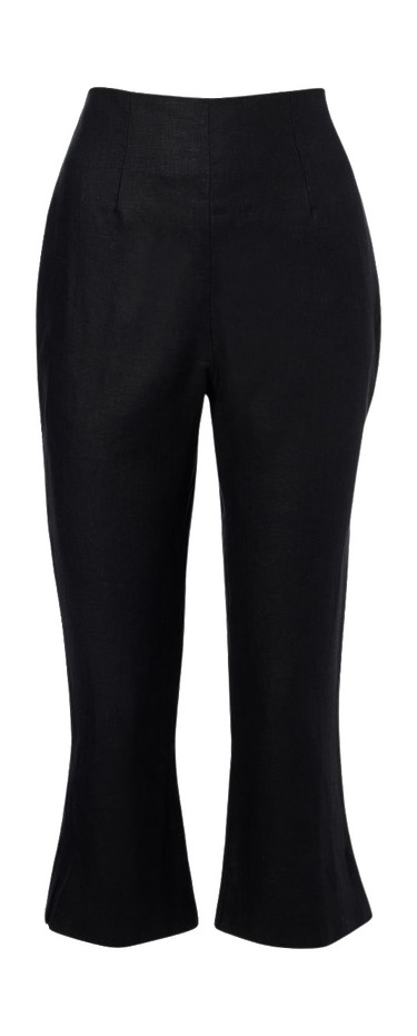 그래서 올해는 조금 다른 선택을 하려고 합니다. 좋아하지만 못 입는 것이라면, 가장 적절한 길이의 카프리 팬츠를 찾기로 한 거죠. 분명 비슷한 분들이 많을 거라 생각하고요. 저는 허벅지가 길고 무릎부터 종아리의 길이가 짧은 편이에요. 그래서 페달 푸셔처럼 무릎에서 끊기는 길이는 안 됩니다. 차라리 종아리까지 내려오는 길이가 낫더군요. 거기에 다리 굴곡을 다 보여줄 필요 없이 바지 밑단이 플레어 팬츠처럼 살짝 퍼진 스타일을 고르면 딱입니다. 전체적으로 바지통이 넉넉한 것이 좋고요. 슈즈는 캐리처럼 8cm 이상의 힐을 고르면 에러입니다. 안타깝게도 발레 플랫도 안 됩니다. 키튼힐 정도에 발등이 드러나는 버전이나 도톰한 웨지 샌들이면 크게 애쓴 것처럼 보이지 않으면서도 다리를 자연스럽게 길어 보이게 합니다.