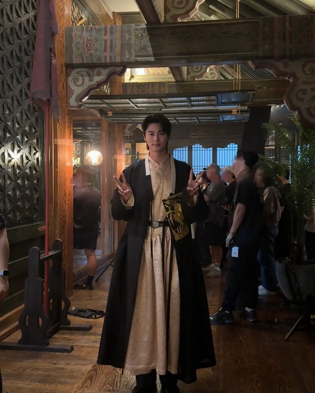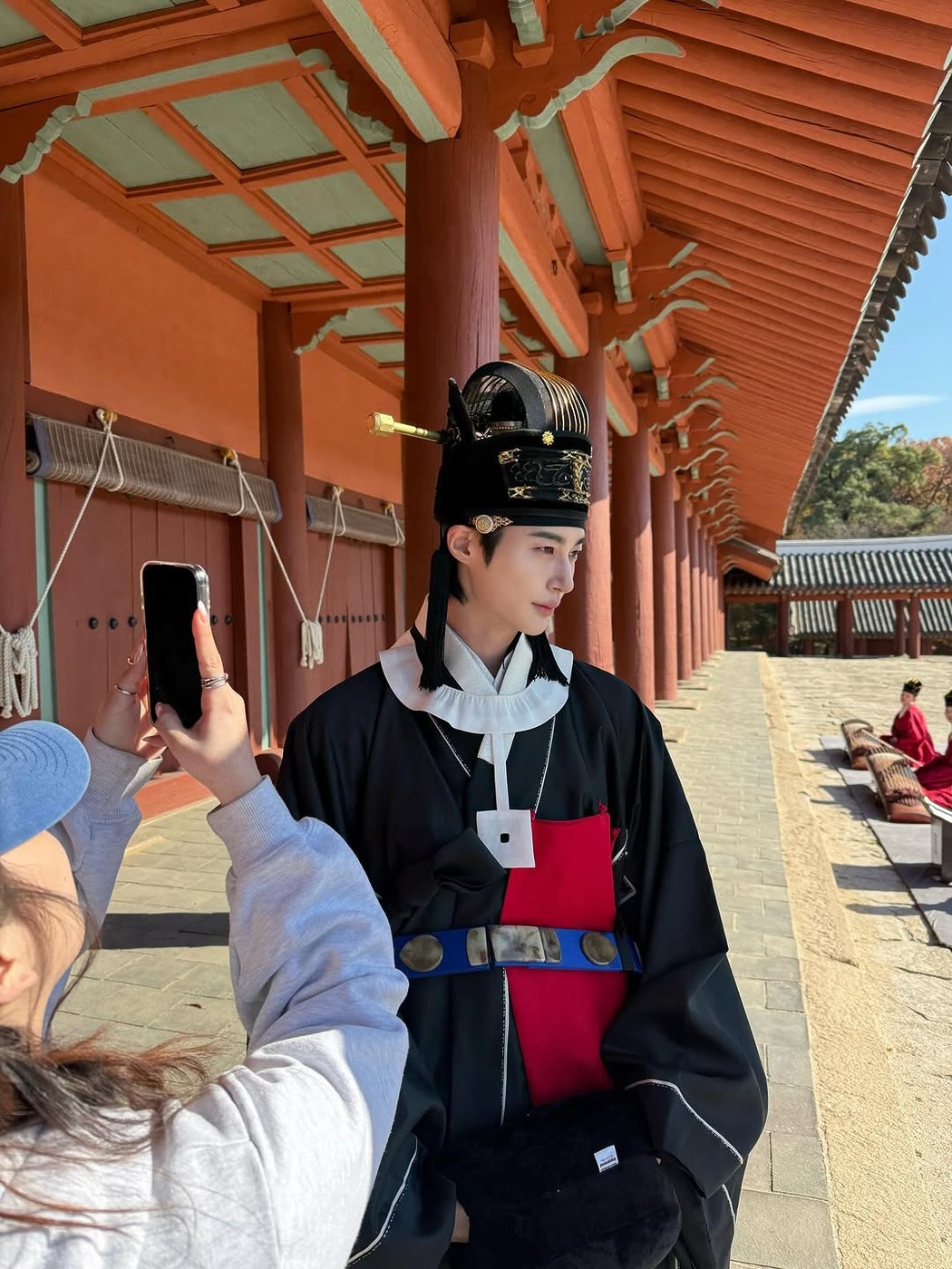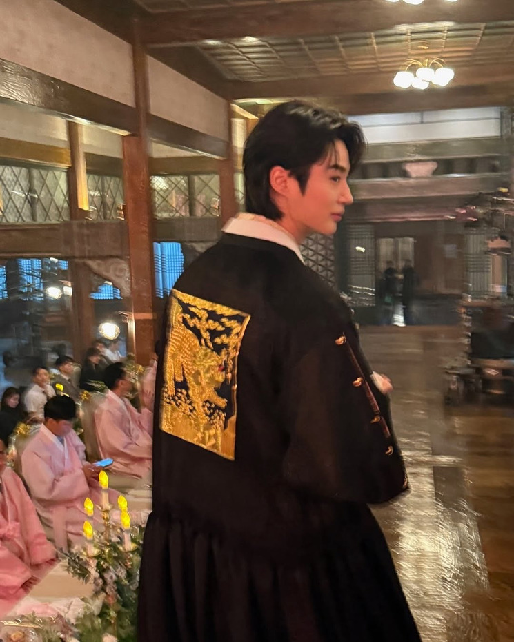 변우석은 벨트 대신 조선 시대 선비들이 허리에 두르던 끈인 세조대를 더했습니다. 곧게 여민 깃선 디테일도 살렸고요.