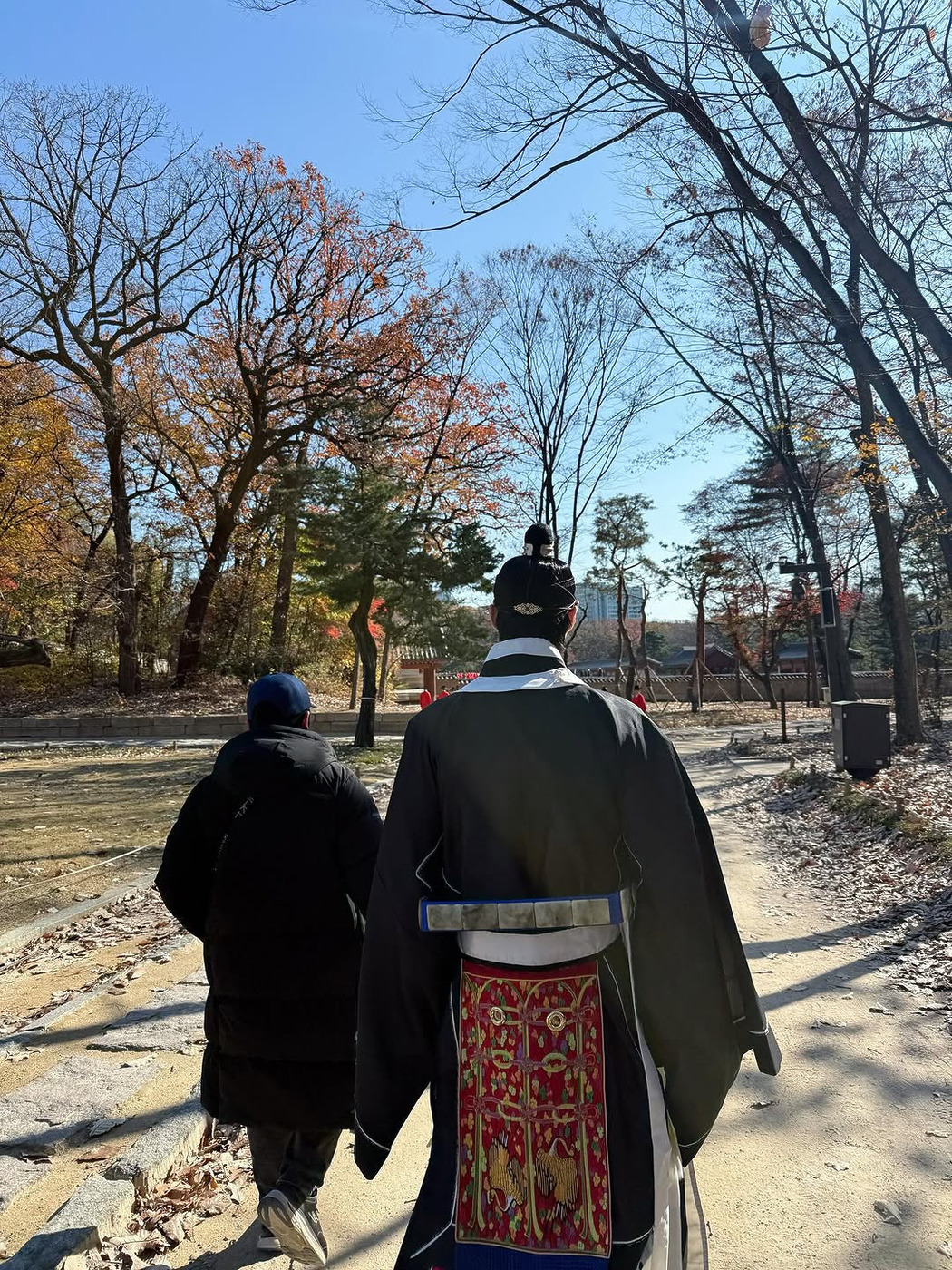 팔에 트임을 더하고 그걸 금장 단추로 잠근 것도 요즘 스타일과 닮았네요. 등 뒤에는 해태를 정교하게 금빛으로 수놓았습니다.