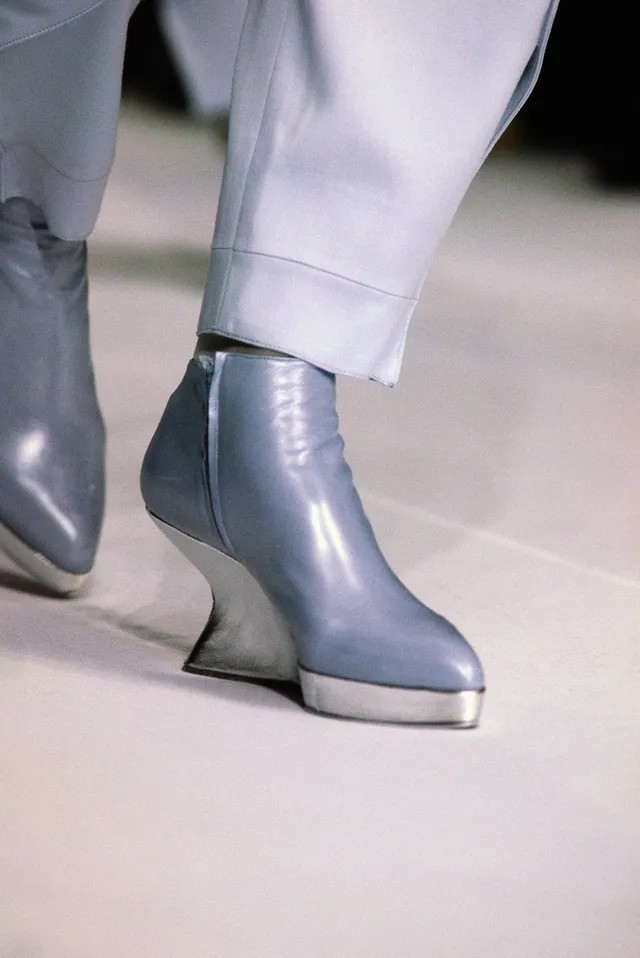 환상적인 패션의 기준을 높이는 데 있어 티에리 뮈글러는 언제나 독보적이었고, 그가 창조한 신발 또한 예외는 아니었습니다. 1980년대 중반, 파리의 한 경기장에서 열린 블록버스터급 패션쇼에서 선보인 ‘염소 발굽’은 여전히 혁신적이죠. 오목한 굽이 특징인 초현실적 플랫폼 부츠는 또한 수많은 신발의 토대가 되었습니다.
