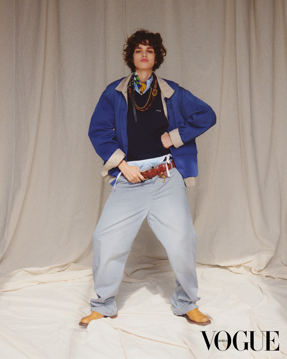 “제 안의 소녀와 소년을 발견한다는 컨셉이 무척 재미있어요! 오직 저만 할 수 있는 컨셉이라고 여기거든요.” 마틸다 게르바리아니가 지닌 상반된 매력이 미우미우 2026 레떼 컬렉션과 만나 더 과감하게 드러났다.