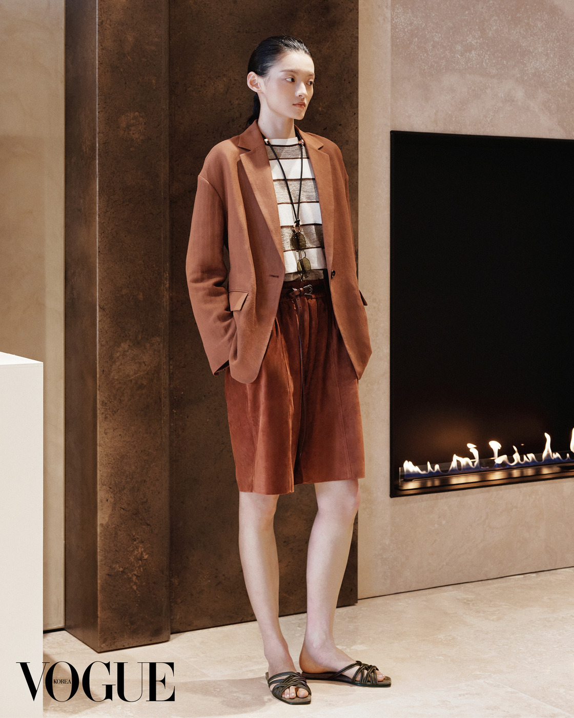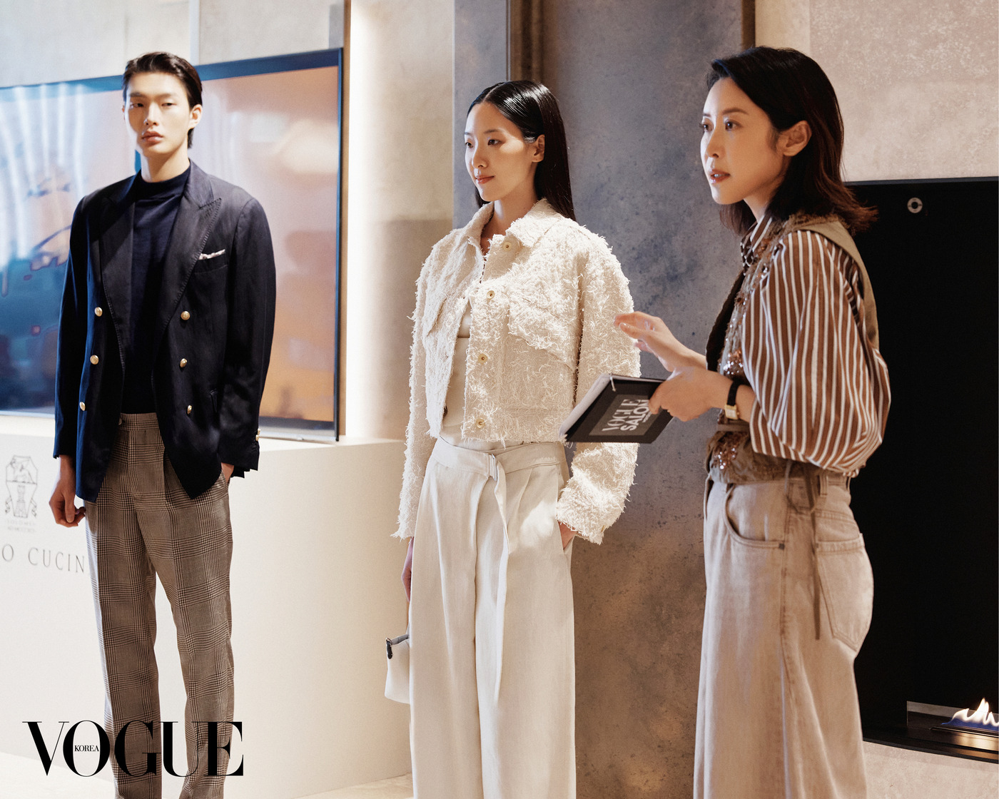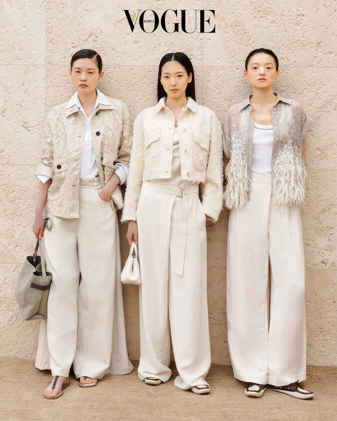 “수공예품의 품질과 미학을 믿습니다. 사람이 살기 힘든 곳에는 진정한 품격이 머물 수 없기 때문입니다.” 공장 노동자로 일하며 힘겨운 삶을 살아온 아버지의 뒷모습을 보며 자란 창립자 브루넬로 쿠치넬리(Brunello Cucinelli)의 고백은 하우스의 근간인 ‘인본주의적 자본주의(Humanistic Capitalism)’를 관통한다. 이탈리아 중부의 작은 도시 솔로메오(Solomeo) 대지 위에 구축한 하우스의 철학과 신념은 장인에게 공정한 보상을 제공하며 자연과 조화를 이루는 윤리적인 삶의 방식을 제안한다. 캐시미어를 다루는 방식 역시 사려 깊다. 동물을 해치지 않고 부드러운 빗질로만 속 털을 수확하는 전통을 고집한다. 소재에 대한 탐구로 이어진 2026 봄/여름 여성 컬렉션은 대지, 공기, 물, 불이라는 네 가지 원소를 주제로 하우스의 정체성을 표현했다. 대지를 형상화한 니트는 나뭇잎의 질감을 입체적으로 살려 자연의 생동감을 전했고, 물에서 영감을 받은 실루엣은 걸을 때마다 몸을 따라 우아하게 찰랑였다. 특히 꾸뛰르적인 공예를 더한 니트웨어는 쿠치넬리의 뛰어난 예술성도 보여준다. 한편 남성 컬렉션은 자연의 선물인 빛에서 영감을 받아 형태가 볼륨을 결정한다는 원칙에 집중했다. 정교한 테일러링을 바탕으로 길이, 구조적인 어깨를 갖춘 실루엣, 칼라의 변주로 현대적인 세련미를 구현했다. 봄기운 충만한 4월, 브루넬로 쿠치넬리 청담 플래그십에서 열린 <보그> 살롱은 특별한 경험이었다. 패션 디렉터 손은영과 함께 둘러본 컬렉션은 장인의 손길과 하우스의 철학을 그대로 전하는 데 부족함이 없었다. 보이는 것보다 훨씬 더 부드럽게 감기는 소재의 촉감, 몸의 곡선을 따라 유연하게 떨어지는 실루엣이 돋보인 컬렉션은 옷을 입는 행위가 단순히 몸을 가리는 것을 넘어 자신의 존엄성도 돌볼 수 있는 고귀한 방식임을 다시 깨닫게 했다. VK