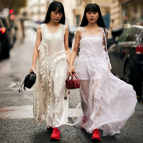 제가 최근 몇 달 사이 구매한 아이템 중 하나가 바로 트랙 재킷입니다. 무난하거나 후줄근하게 느껴질 수 있는 트랙 재킷에 특별함을 더하는 방법은 그리 어렵지 않습니다. 스커트나 청바지처럼, 스포티한 분위기와는 거리가 먼 하의를 활용해 믹스 매치를 연출하는 거죠. 두 번의 컬렉션 만에 뉴욕에서 가장 주목받는 브랜드로 거듭난 리(Lii)는 볼륨감이 돋보이는 치마를, 시몬 로샤는 페미닌한 무드의 플리츠스커트를 선택했군요.