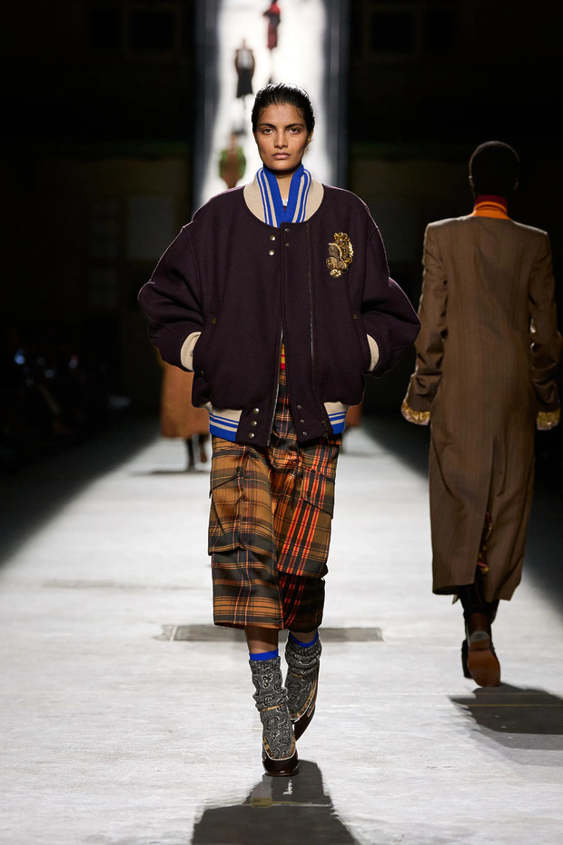 트랙 재킷을 활용한 믹스 매치가 조금은 극단적으로 느껴진다면? 바시티 재킷을 걸쳐주면 됩니다. 마찬가지로 스포티한 분위기를 자아내지만, 아이비리그와의 연관성 덕분에 어딘가 단정한 분위기도 느껴지는 아이템이죠. 다만 바시티 재킷을 입을 때 프레피 룩의 공식을 곧이곧대로 따르는 것은 추천하지 않습니다. 치노 팬츠와 로퍼처럼, ‘바시티 재킷’ 하면 흔히 떠올리는 아이템은 활용하지 않는 편이 낫다는 뜻이죠. 규칙은 없습니다. 핵심은 누구에게나 익숙한 아이템인 바시티 재킷으로 낯선 스타일링을 연출하는 것이니까요!