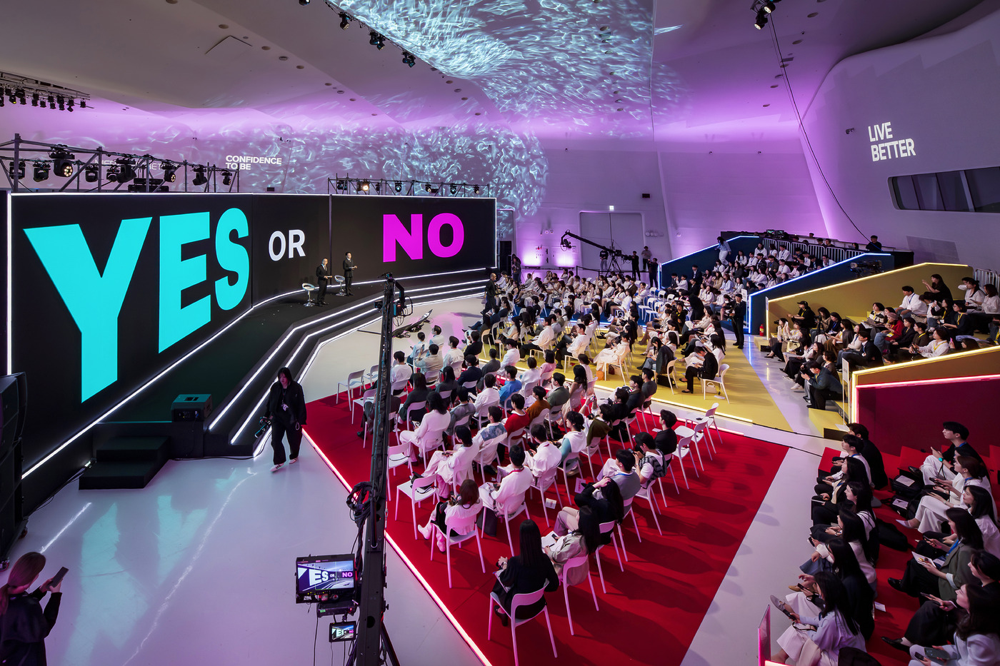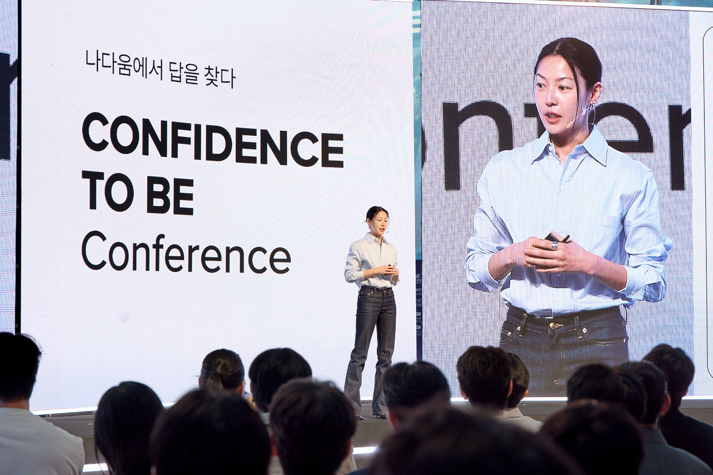행사는 시작부터 경험 중심으로 설계됐다. 청중은 입장과 동시에 ‘페르소나 테스트’ ‘마이 컨피던스 카드’ ‘AI 비디오 키오스크’ 등 다양한 인터랙티브 공간을 거치며 스스로를 탐색하는 과정을 밟는다. 무대와 객석의 경계를 허문 동선 역시 상징적이다. 청중은 어느 순간 무대 위에 서고, 다시 객석으로 이동한다. 자신감을 ‘보는 것’이 아니라 ‘경험하는 것’으로 전환한 장치다.