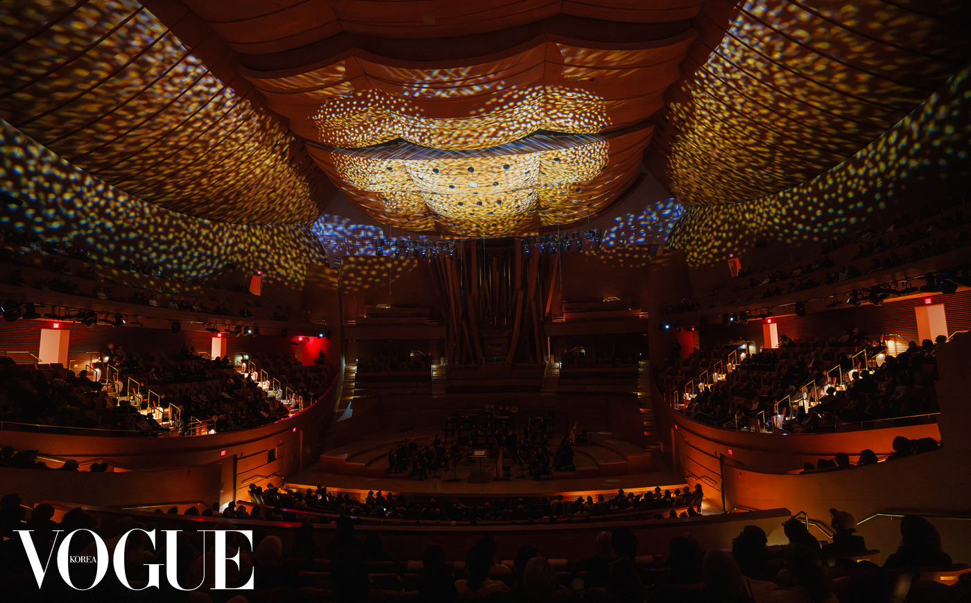 밤 8시가 가까워지자, 월트 디즈니 콘서트홀의 로비가 길을 건너온 관람객으로 가득 찼다. 양혜규의 작품을 눈으로 담았으니, 이제는 음악을 통해 온전히 윤이상을 경험할 차례다. 이날 공연은 일찌감치 매진이었다. 양혜규가 아무리 ‘유일한 단 하나’에 저항하는 예술가라도, 오늘만큼은 이를 인정해야 했을 것이다. 전시는 오는 8월 2일까지 열리지만, 전시와 쌍을 이루는 공연은 이날 하루뿐이었다. 나의 지인은 공연을 보기 위해 당장이라도 로스앤젤레스행 비행기표를 끊을 기세였다. 물론 이 도시에서 그를 만날 수는 없었지만, 유일하고 한시적이며 휘발적이라 더 매혹적일 수밖에 없는 프로젝트는 모두를 한자리에 불러 모았다. 이런 상황은 모든 일의 발단이 된 양혜규조차 전혀 상상하지 못한 것이었다. “이 곡을 공연으로 듣는 건 나도 처음이고, 어쩌면 죽을 때까지 한 번도 공연으로 직접 듣지 못할 수도 있다고 여겼어요.” 윤이상이라는 존재를 혼자 작업해온 양혜규가 가끔 외로워 보이기도, 그래서 수행하는 것 같기도 했는데, 모르긴 해도 그런 작가에게 가장 벅찬 시간이 기다리고 있었다.