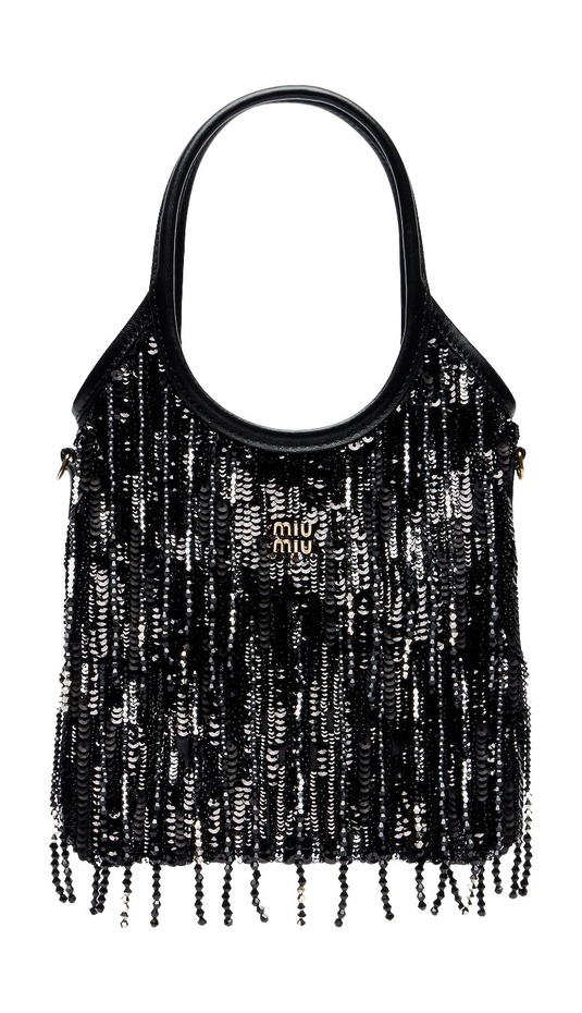 미우미우아이비 미디엄 임벨리시드 새틴 토트 백