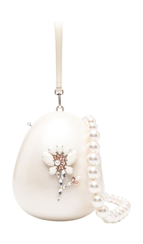 시몬 로샤라지 펄 에그 플로럴 비즈 크로스 백