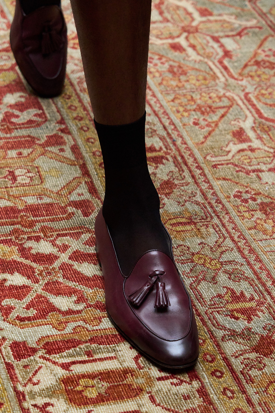 하지만 ‘레드’와 ‘레더’가 만났을 땐 타의 추종을 불허하는 야성미를 뿜어냅니다. 다른 조합으로는 흉내 내기 어렵죠. 그 강렬함을 일상으로 끌어들이기 위해 고심하던 중 눈을 돌린 것이 바로 ‘레드 로퍼’입니다. 최근 지지 하디드와 젠데이아가 연달아 레드 로퍼를 신고 등장하며 이 흐름에 불을 지폈죠. 채도를 낮춰 브라운을 몇 방울 섞은 듯한 버건디 컬러는 재킷보다 덜 부담스럽습니다.
