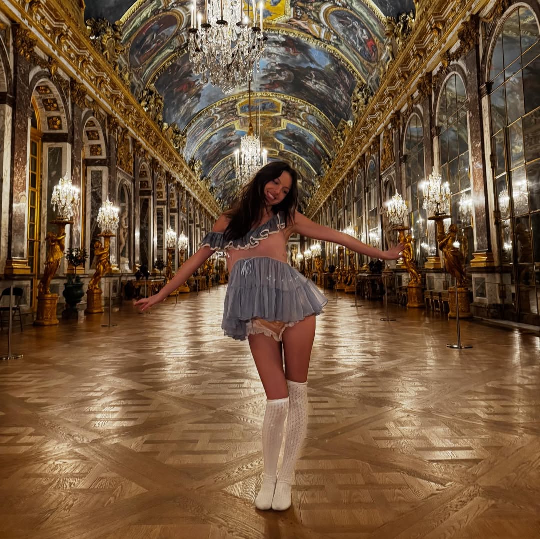 최근 세 번째 정규 앨범의 첫 번째 싱글 ‘Drop Dead’를 공개한 올리비아 로드리고는 뮤직비디오를 통해 감각적인 모습을 보여줬습니다. 페트라 콜린스가 감독을 맡은 뮤직비디오에서 로드리고는 사랑스러우면서도 발칙한 모습으로 등장합니다. 핑크색 빈티지 헤드폰, 끌로에 2026 프리폴 컬렉션에서 가져온 프릴 장식 베이비 돌 톱, 빈티지 블루머 쇼츠, 무릎까지 오는 흰색 양말을 착용하고 베르사유궁을 거닐며 짝사랑에 대한 그리움을 노래하죠. 마리 앙투아네트가 2026년에 존재했다면 입었을 법한 스타일입니다. 로드리고는 콜린스 감독과 함께 날것 그대로의 감정을 장난스럽고 몽환적으로 표현해냅니다.