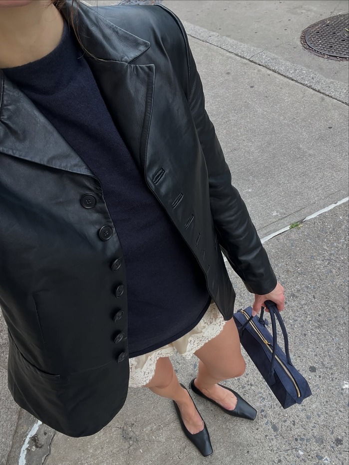 1990년대에는 슬립 드레스나 스커트를 미니멀하게 연출하는 게 정답에 가까웠죠. 레이스 쇼츠는 다릅니다. 스타일링의 폭이 훨씬 넓거든요. 요즘처럼 선선한 날에는 가죽 재킷이나 블레이저를 걸치면 상반신과 하반신이 극명한 대비를 이루는 믹스 매치가 완성됩니다. 스니커즈부터 구두와 부츠까지, 신발도 아무런 제약 없이 고를 수 있고요.
