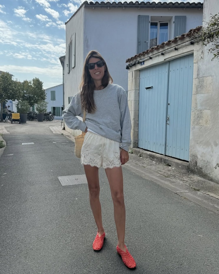 무더운 날씨가 시작되면 레이스 쇼츠는 더 빛을 발할 겁니다. 길이가 짧아 여름에 딱 어울리는 것은 물론, 섬세한 레이스 장식 덕에 룩이 심심해 보일 걱정도 덜 수 있으니까요. 레이스 쇼츠 위에 무지 롱 슬리브나 프린트 티셔츠만 입어도 포인트가 살아 있는 룩을 연출할 수 있습니다.