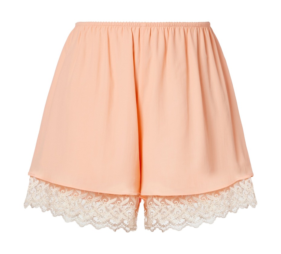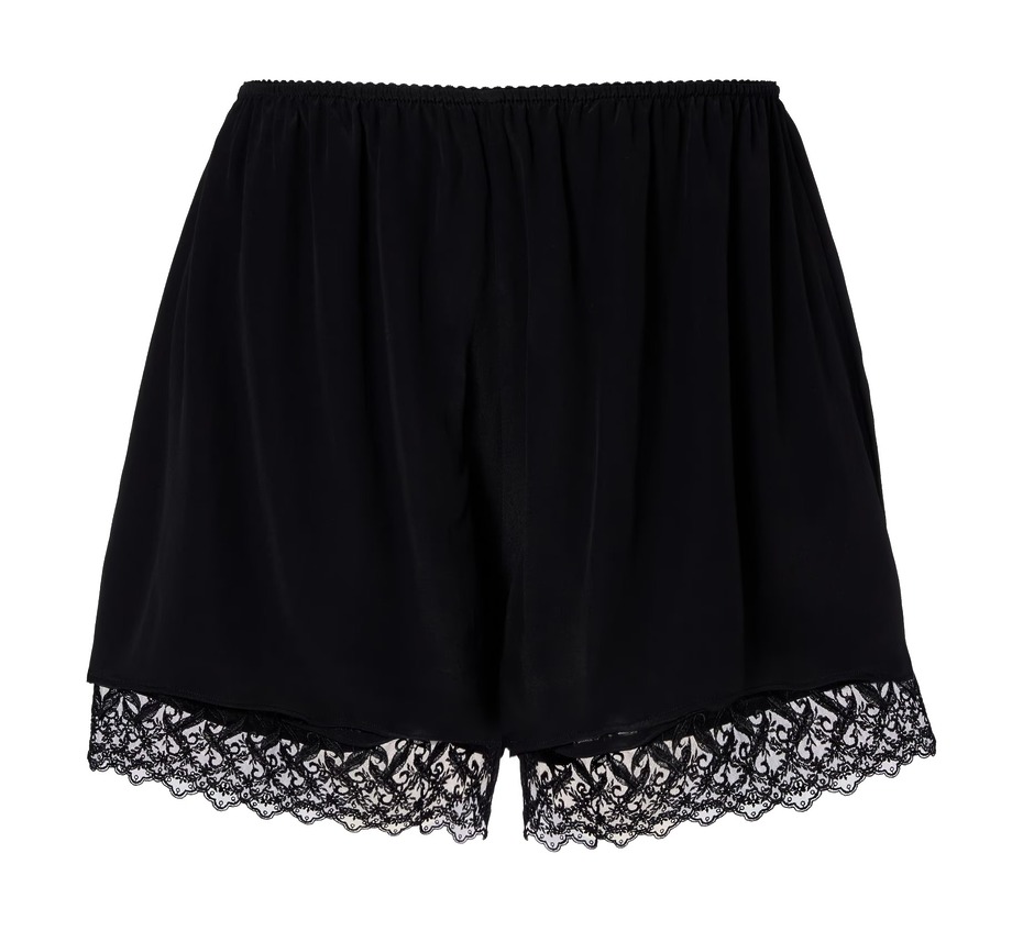슬립 드레스를 입고 파티를 즐기는 케이트 모스, 그리고 슬립 스커트 차림으로 런웨이를 누비는 모델의 모습을 보며 군침만 삼켜온 사람들을 위한 희소식이 하나 있습니다. 밑단에 레이스 장식을 더한 실크나 새틴 소재 쇼츠가 대안으로 급부상하고 있다는 사실이죠.