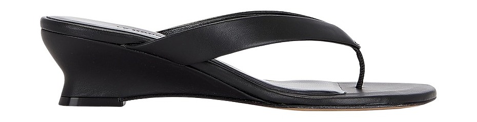 ‘웨지 샌들’은 뒤꿈치를 높이고 발바닥 전체를 받쳐주는 플랫폼이 특징이죠. 그 덕분에 편안하고 안정적이라는 장점이 이 샌들을 인기 반열로 이끌고 있어요. 플랫폼이 체중을 고르게 분산시켜 일반 펌프스처럼 불편하지 않으면서도 힐의 기능을 하거든요. 카프리 팬츠처럼 비율 중요한 옷이 많아지는 요즘, 웨지 샌들 하나면 된다는 얘깁니다. 뮬 타입, 스트랩 타입, 플립플롭 타입까지 다양하게 찾아볼 수 있으며, ‘플립플롭 웨지 샌들’은 지금 가장 핫한 두 가지 트렌드를 하나로 담아냅니다.