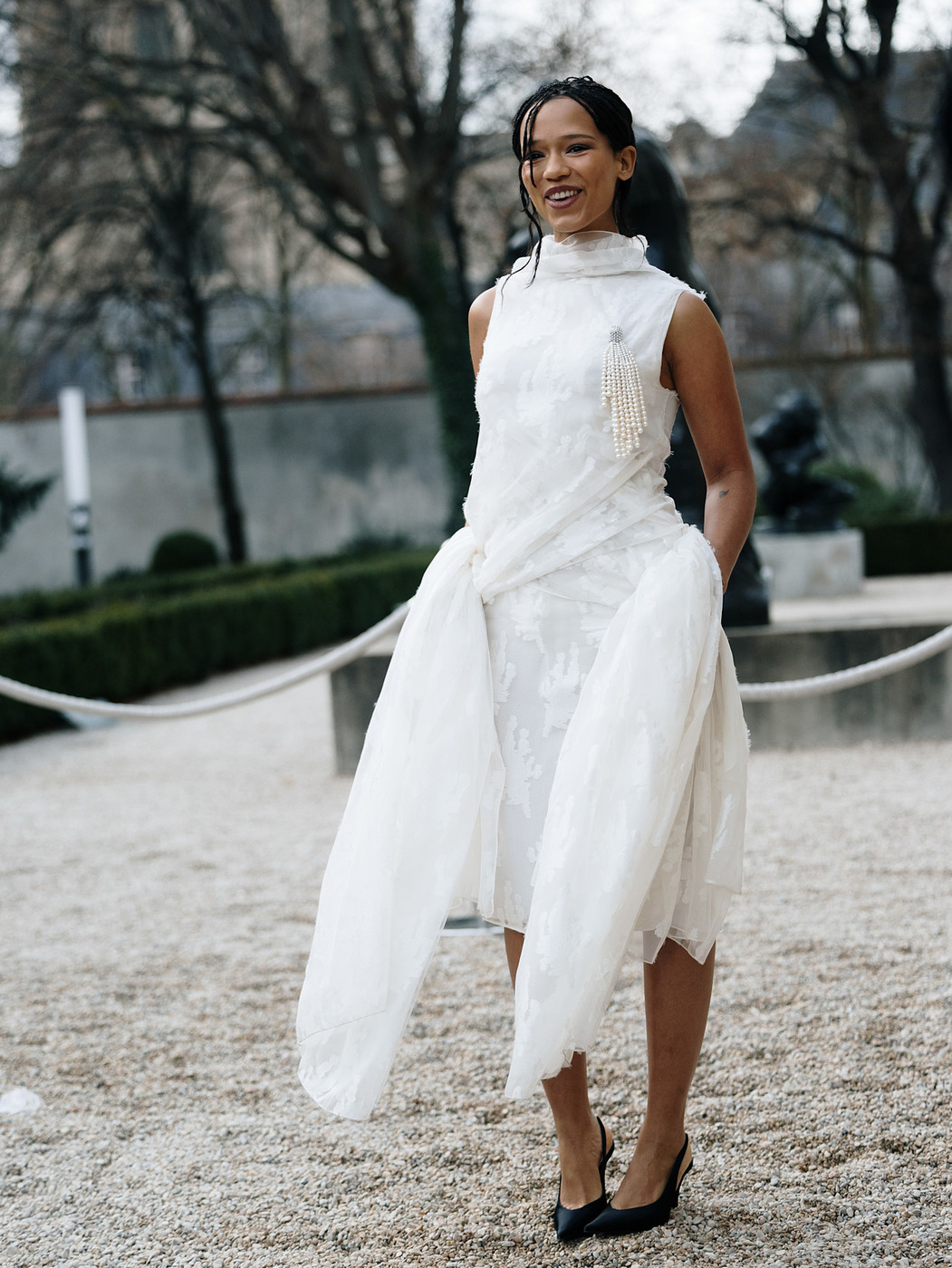 옷을 겹겹이 쌓는 레이어드 스타일링보다 한 가지 아이템만으로 완성한 룩이 효과적일 때가 있죠. 러플과 드레이핑 장식이 과한, 페미닌한 흰 드레스를 입을 때가 딱 그렇습니다. 무엇보다도 아무런 고민 없이, 그냥 드레스 한 벌을 ‘툭’ 걸치는 것만으로 모든 게 끝난다는 점이 매력적입니다. 흡사 동화 속에서 튀어나온 듯한 디자인이 부담스럽게 느껴진다면, 구두 대신 스니커즈를 조합해보세요.