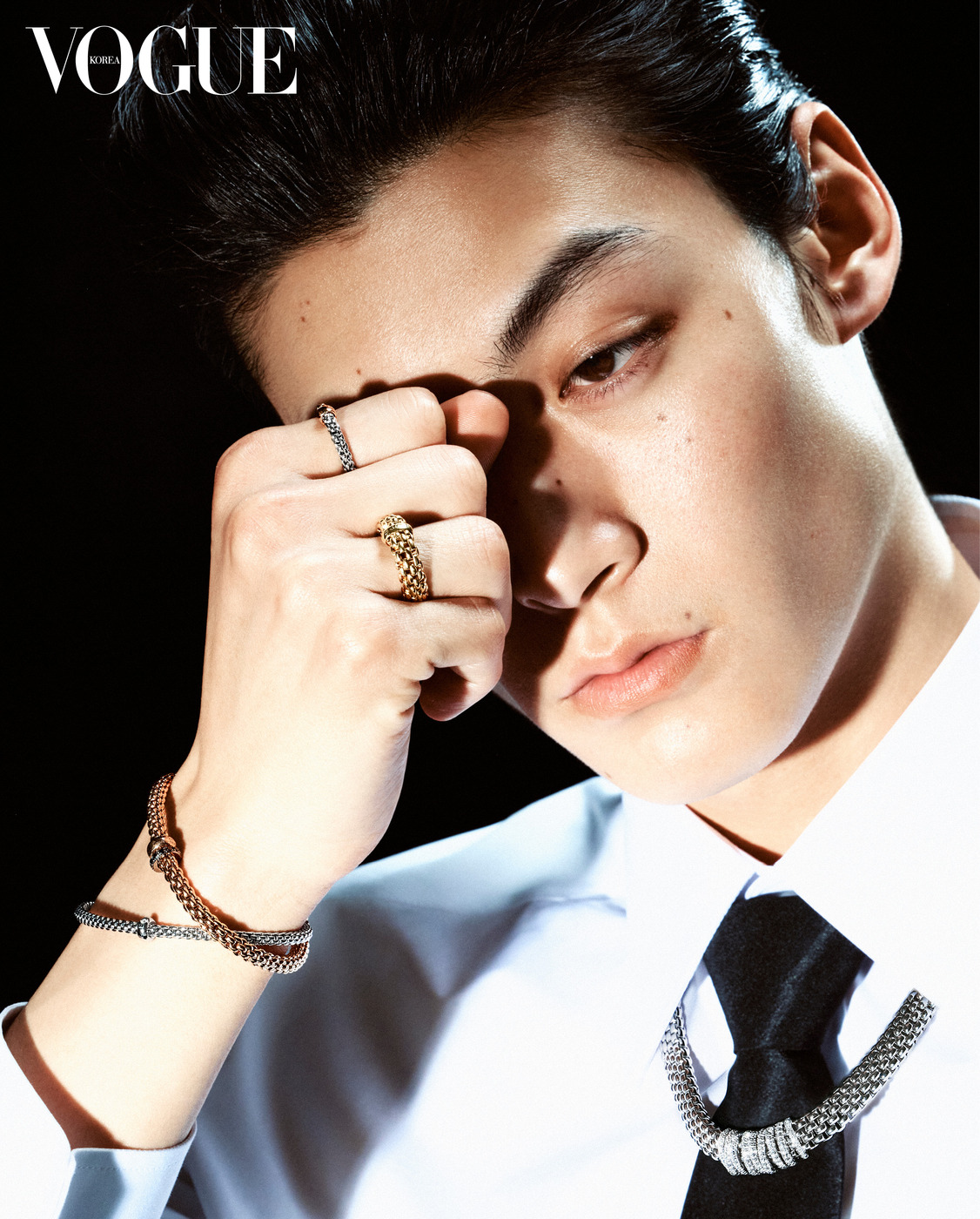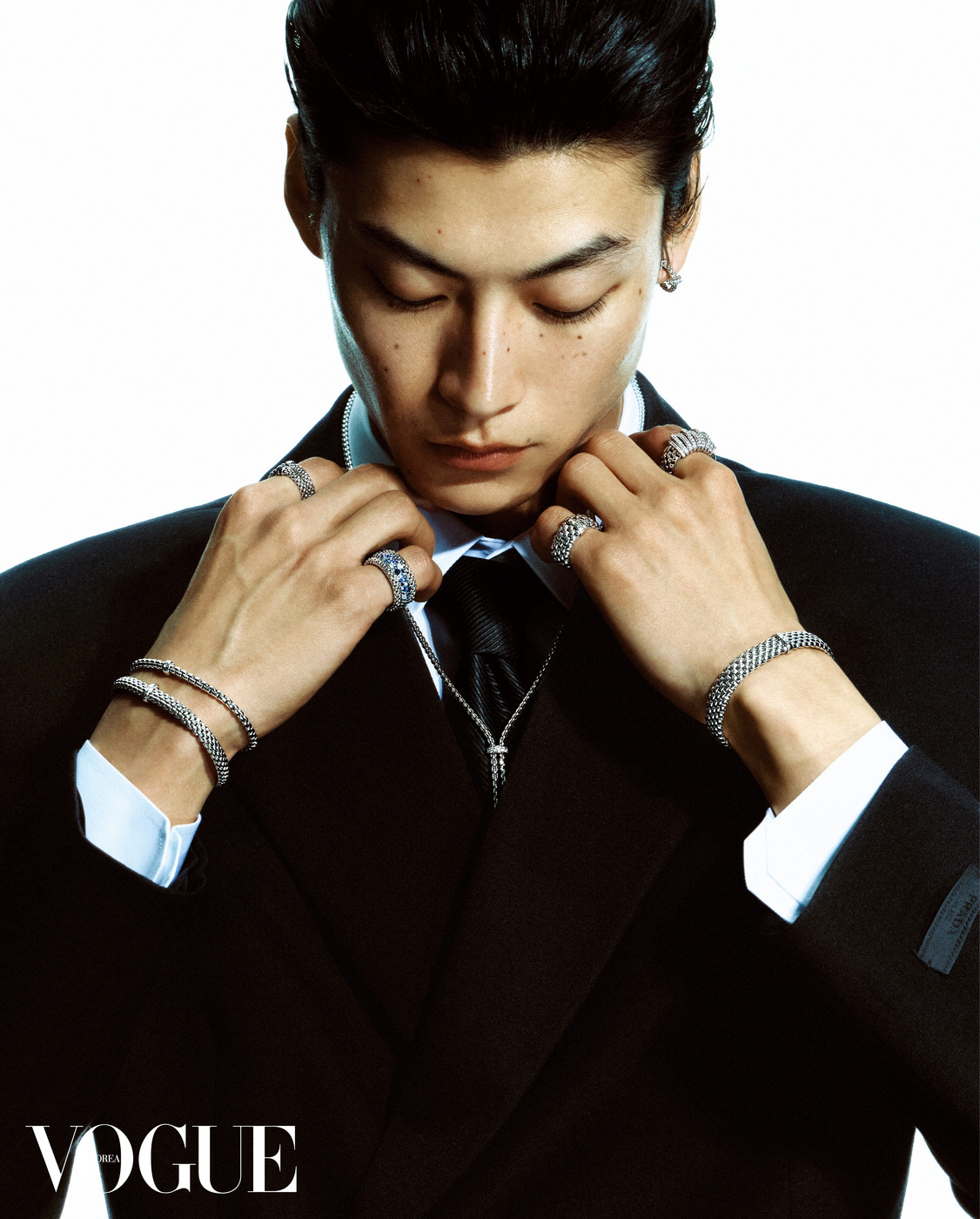플렉스잇은 주얼리에 개성을 더한다. 성별과 나이의 경계를 넘어 모두가 편하게 착용할 수 있는 것이 플렉스잇 기술의 핵심. 진이 입은 블랙 드레스는 메종 마르지엘라(Maison Margiela), 히비키가 입은 재킷은 송지오 옴므(Songzio Homme).