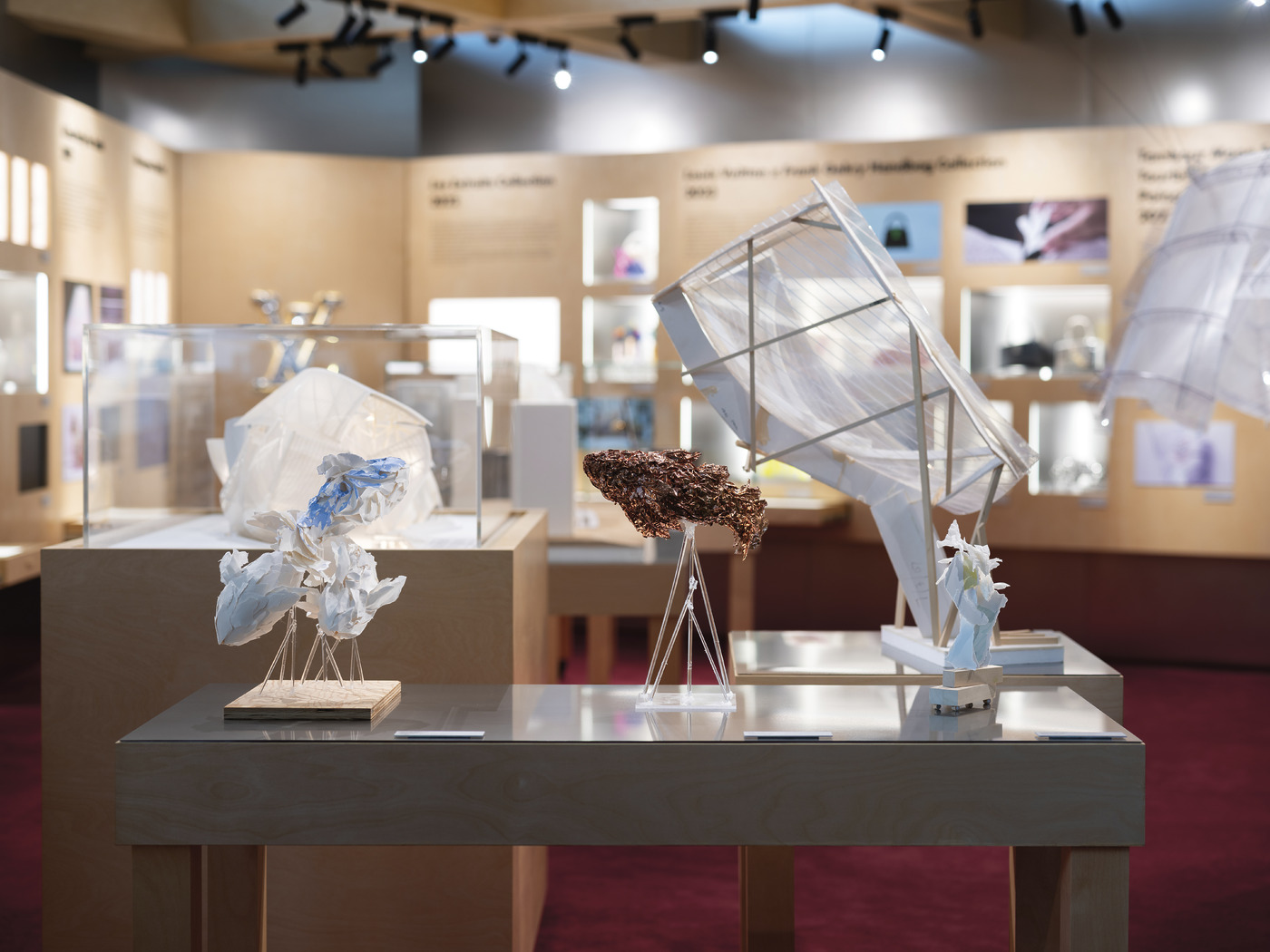 게리의 동화적 상상력을 엿볼 수 있는 아기자기한 오브제도 눈길을 끌었다. 2022년 창립자 루이 비통 탄생 200주년을 기념해 크리에이터 200명에게 각자의 개성으로 재해석한 트렁크를 만들게 한 프로젝트에서 게리는 가장 독특하면서도 시적인 제안을 내놓았다. 바로 ‘루이를 위한 티 파티(A Tea Party for Louis)’. 그는 트렁크를 기존 운반 도구가 아니라 기발한 건축 테이블로 변모시켰다. <이상한 나라의 앨리스>에서 영감을 받아 주인공 앨리스와 하트 여왕, 카드 병정 등의 캐릭터 미니어처가 자리한 게리의 트렁크가 이번 전시에 그대로 구현되어 있었다. 건물 형태를 띠지는 않았지만, 기능은 건물과 정확히 같은 이 크렁크에서 루이 비통 아이콘에 내러티브를 삽입함으로써 예술적 발명의 가치를 강조한 그의 어린아이 같은 심성을 엿볼 수 있다. 사파이어 케이스로 구현된 ‘땅부르’ 시계는 빛에 대한 그의 집요한 탐구를 보여준다. 특히 시계는 찰나의 시간을 담는 가장 작은 ‘건축물’로서 게리의 기념비적인 비전을 손목 위에 구현해낸 것으로 평가받는다.