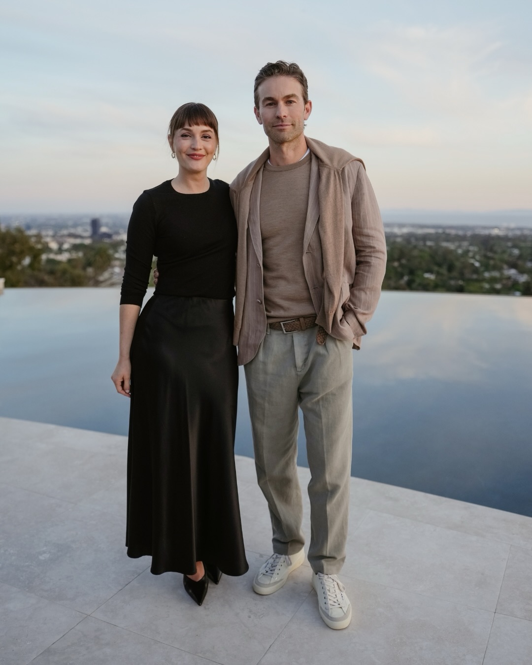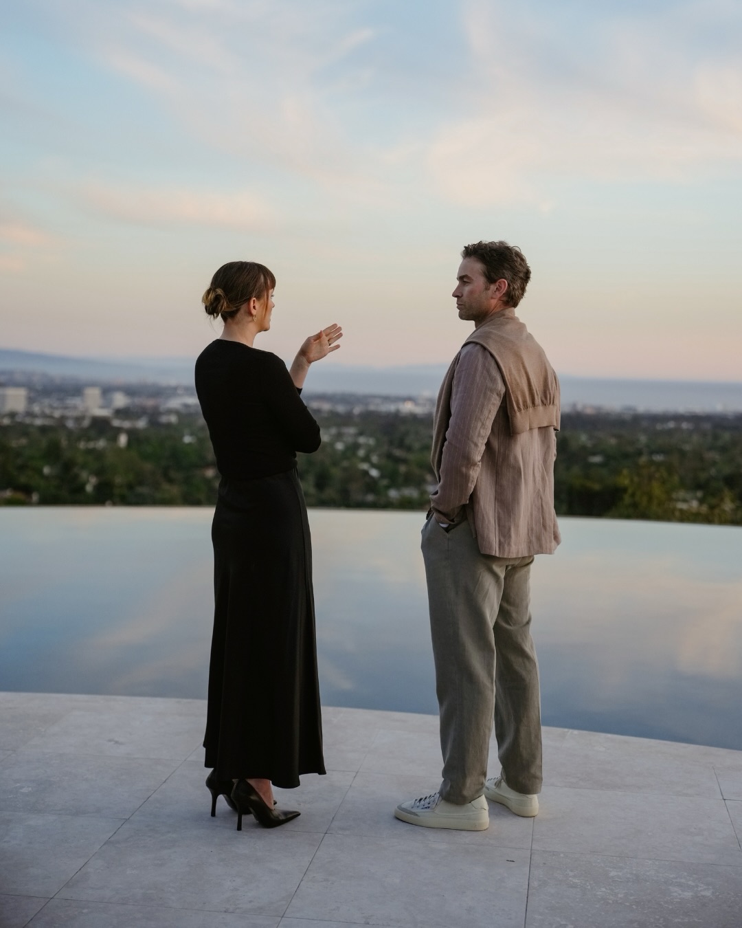 현지 시간으로 지난 23일 밤, 로스앤젤레스 게티 하우스에서 열린 팔코네리(Falconeri) 디너에 두 배우가 나란히 참석했습니다. 미스터는 미니멀한 블랙 톱에 우아한 광택이 감도는 새틴 맥시 스커트, 그리고 날렵한 하이힐을 매치해 시크한 올 블랙 룩을 완성했습니다.