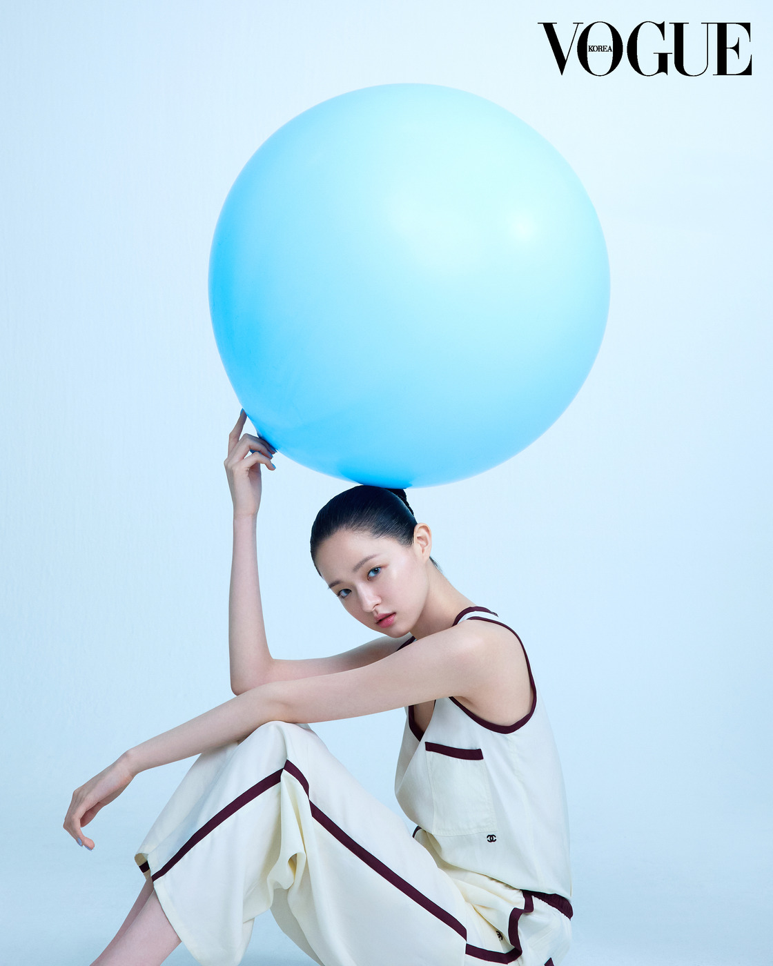 CAMELLIA BOMB 팽팽하게 부풀어 오른 풍선처럼 피부 속 수분이 꽉 채워졌다. ‘이드라 뷰티 마이크로 세럼’은 샤넬 최초로 두 가지 타입의 마이크로 버블을 함유해 피부 본연의 보습 능력을 강화하는 동시에 탄력까지 끌어올린다. 화이트 슬리브리스와 팬츠는 샤넬(Chanel).
