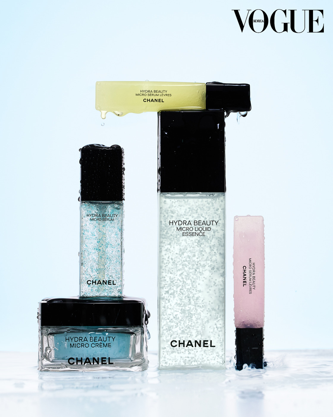 MOISTURE LAYERING 물줄기가 떨어지고 고이다 다시 흐른다. 수분도 비슷한 방식으로 피부에 쌓인다. ‘이드라 뷰티 마이크로 리퀴드 에센스’로 피붓결을 정돈한 뒤, ‘이드라 뷰티 마이크로 세럼’으로 채우고 ‘이드라 뷰티 마이크로 크림’으로 마무리하는 보습 루틴. 마지막으로 ‘이드라 뷰티 마이크로 립 세럼’까지 더하면 피부 전체의 수분 밸런스가 자연스럽게 맞춰진다. 제품은 샤넬 뷰티.