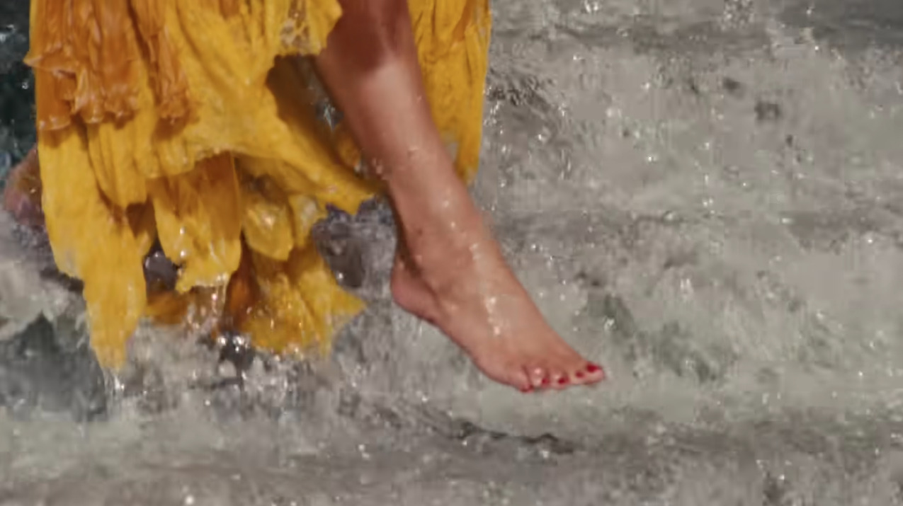 여러 장의 사진 가운데 팬들의 시선을 끈 사진이 한 장이 있습니다. 드레스 스커트 아래로 계단에 발을 내딛는 비욘세의 다리가 포착된 사진입니다. 눈썰미 좋은 팬들은 그 모습이 비욘세가 2016년 발매한 앨범 <레모네이드(Lemonade)> 수록곡 ‘Hold Up’ 뮤직비디오의 한 장면과 매우 비슷하다는 사실을 발견했습니다. 뮤직비디오에서 비욘세는 로베르토 카발리의 밝은 노란색 드레스를 입고 있죠.