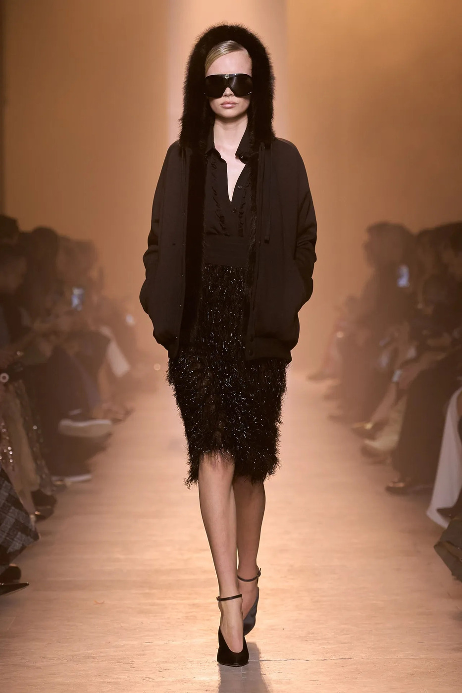 2025~2026년 가을/겨울 컬렉션에서도 ‘반짝이 스커트’를 심심치 않게 찾아볼 수 있었습니다. 록산다는 노란색 시퀸으로 스커트를 꾸몄고, 구찌는 팝한 오렌지색 시스루 스커트에 꽃과 글리터를 더했습니다. 엘리사브는 어두운 컬러와 반짝이는 텍스처가 조화를 이루는 모노크롬 스커트를 선보였고요.