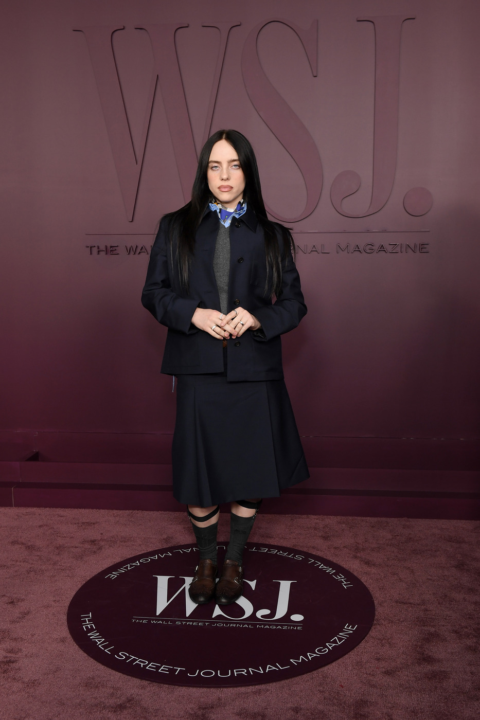 레드 카펫에서도 아일리시는 완벽한 모습을 보여줬습니다. 미우미우 런웨이 룩으로 다크 아카데미 미학에 충실했죠. 블루 셔츠와 회색 스웨터, 네이비 재킷, 플리츠 스커트 등으로 스쿨걸 룩을 완성했습니다. 목에는 컬러풀한 스카프를 둘렀고요. 진회색 양말과 서스펜더를 옥스퍼드화와 매치하는 센스도 자랑했죠.